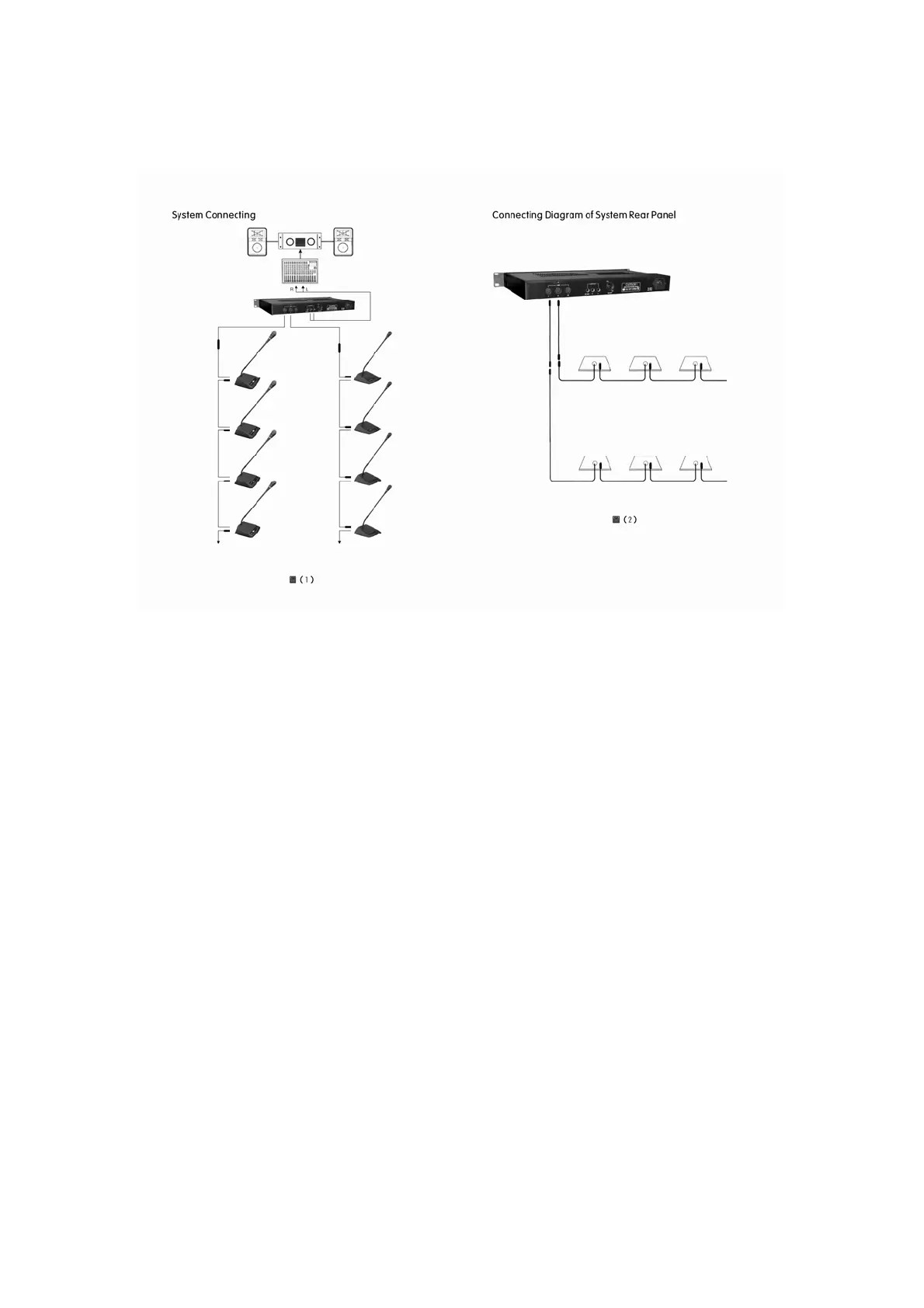 3. Please do not put the loudspeakers facing to the microphones to avoid whistling.