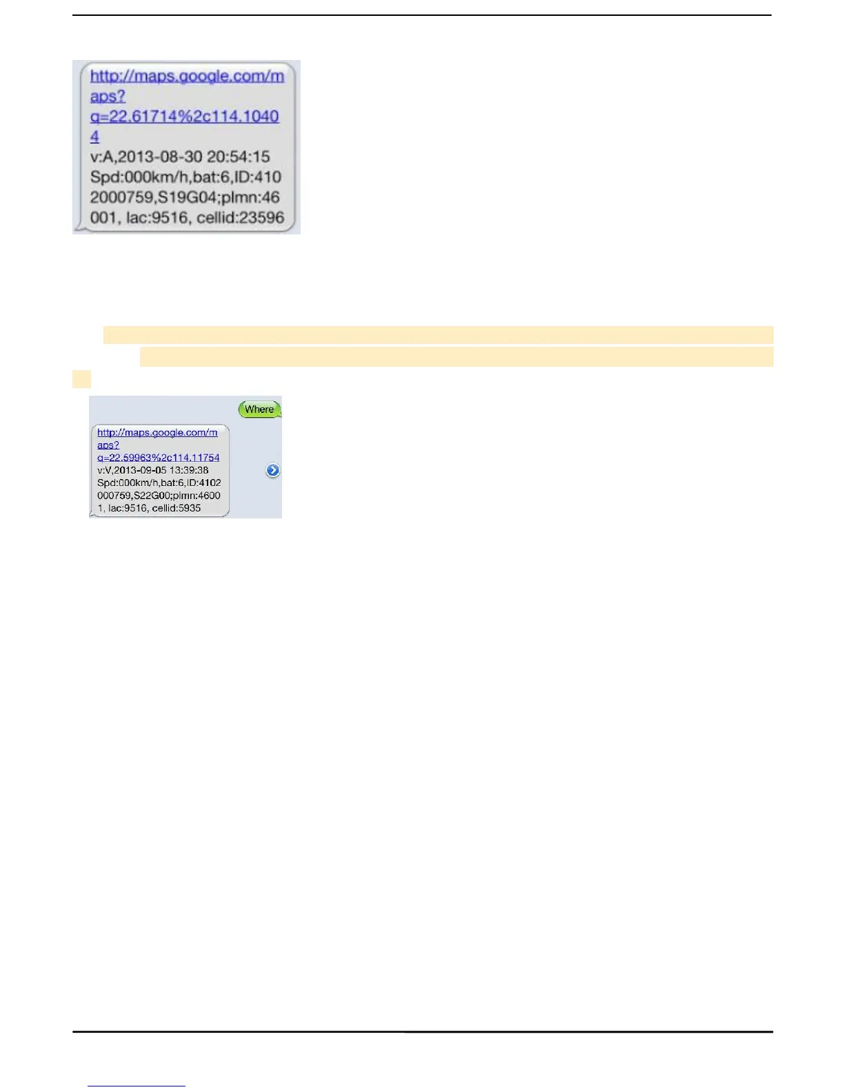 5.7.3 When an authorized number dials up the unit, it will hang up and report a real-time Geo-info as below: