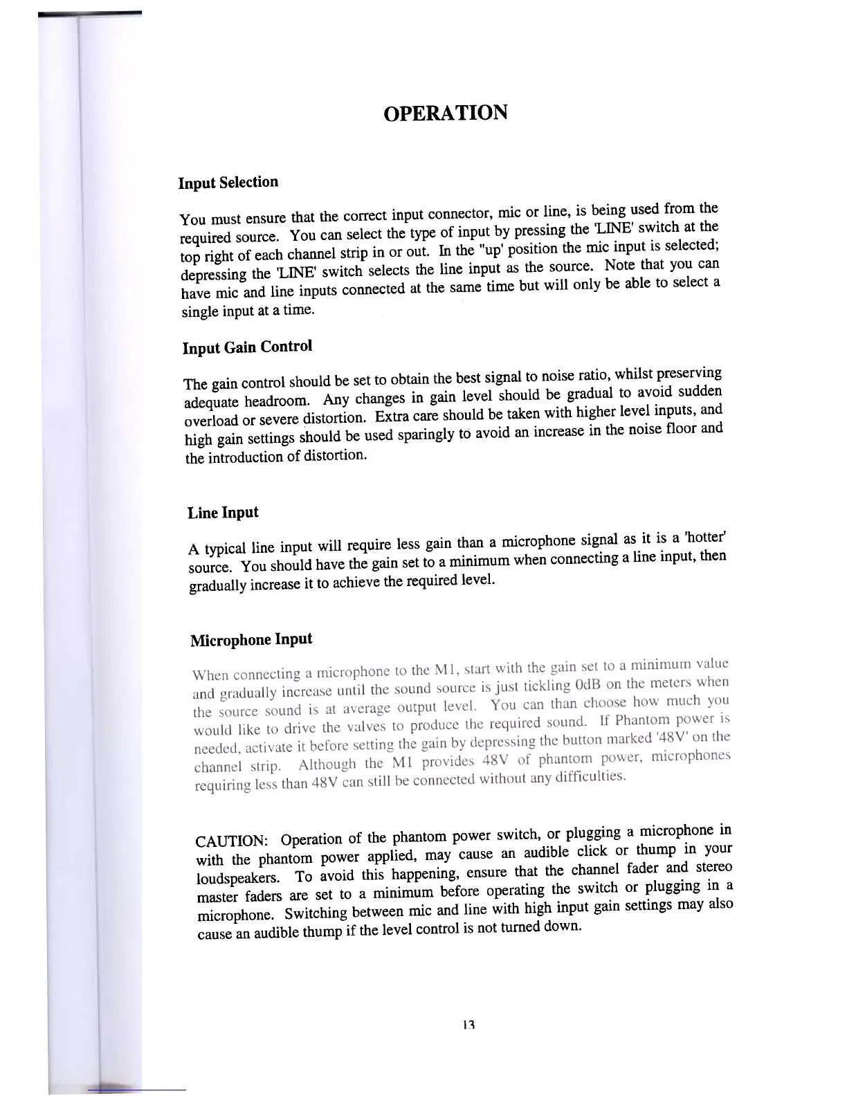 CAUTION: Operation of the phantom power switch, or plugging a microphone in