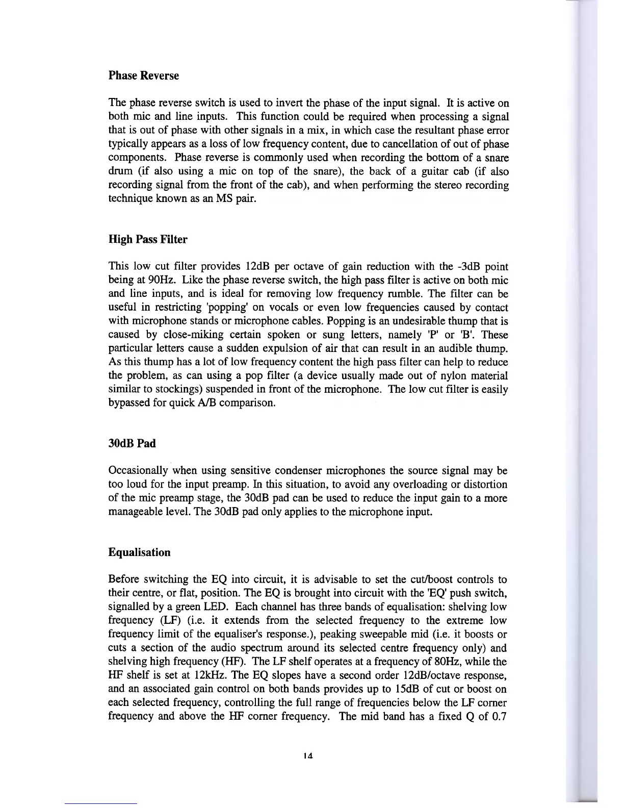 being at 90Hz. Like the phase reverse switch, the high pass filter is active on both mic
