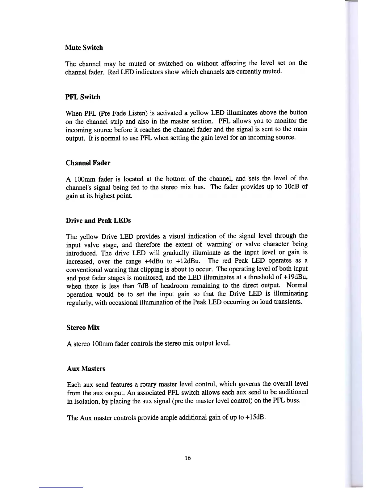 channel's signal being fed to the stereo mix bus. The fader provides up to lOdB of