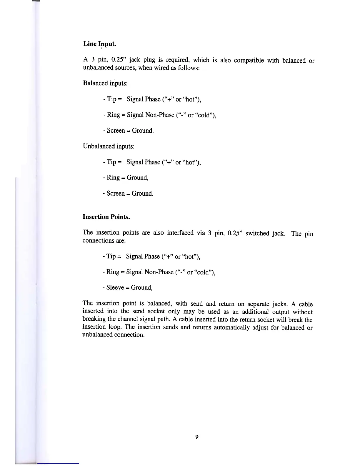 The insertion points are also interfaced via 3 pin, 0.25" switched jack.