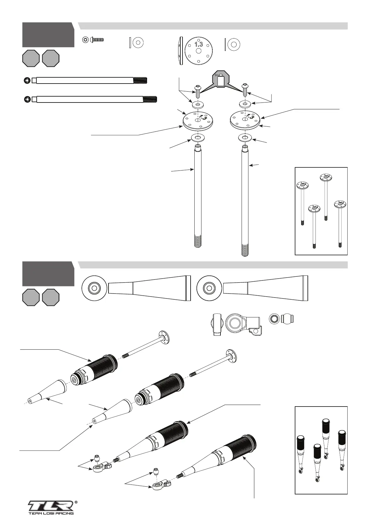TLR 8IGHT-XT - B3 Shock Assembly; EN Front; EN Rear