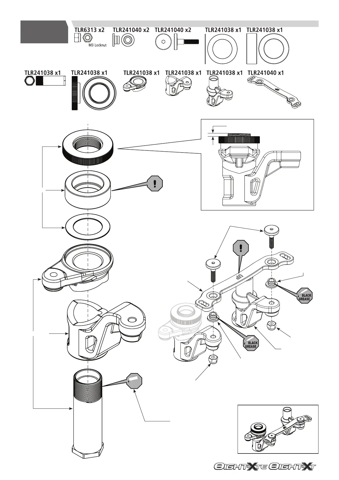 TLR 8IGHT-XT - H1 Steering Assembly; EN 1 drop