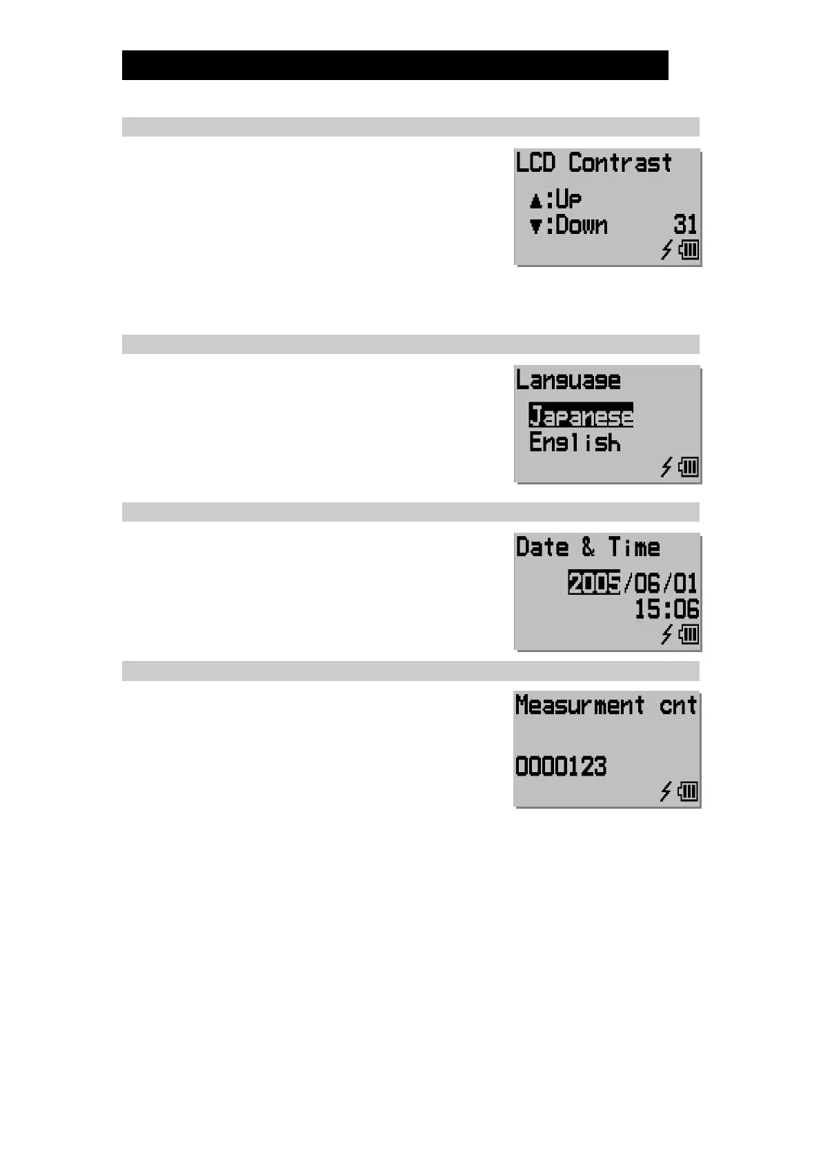 Increase or decrease the LCD display contrast level