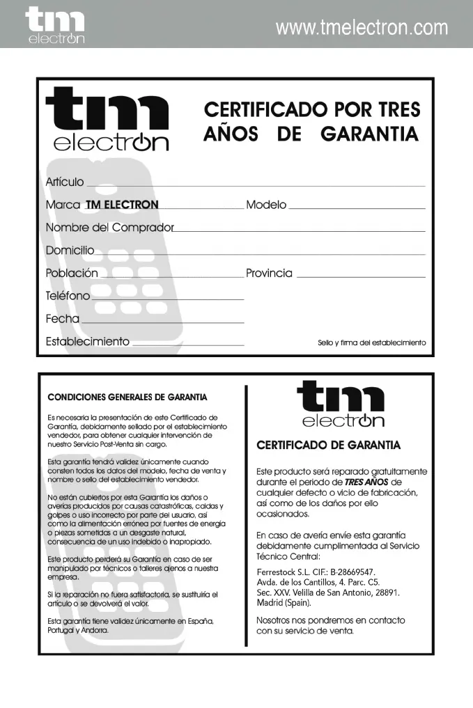 TM Electron TMPGR004 - Warranty Information; Warranty Certificate; General Warranty Conditions