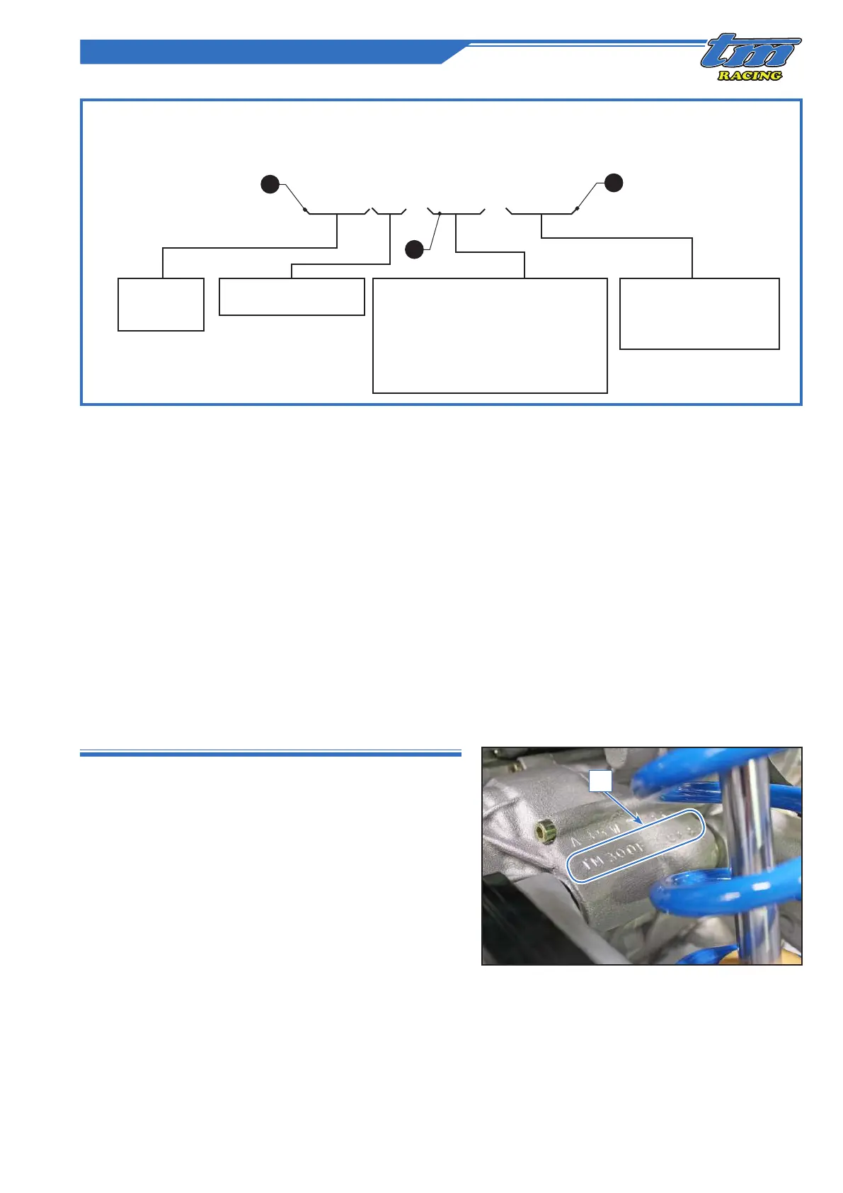 The displacement, type of power source and type of use dene the motorcycle model and engine of each TM Racing motorcycle.