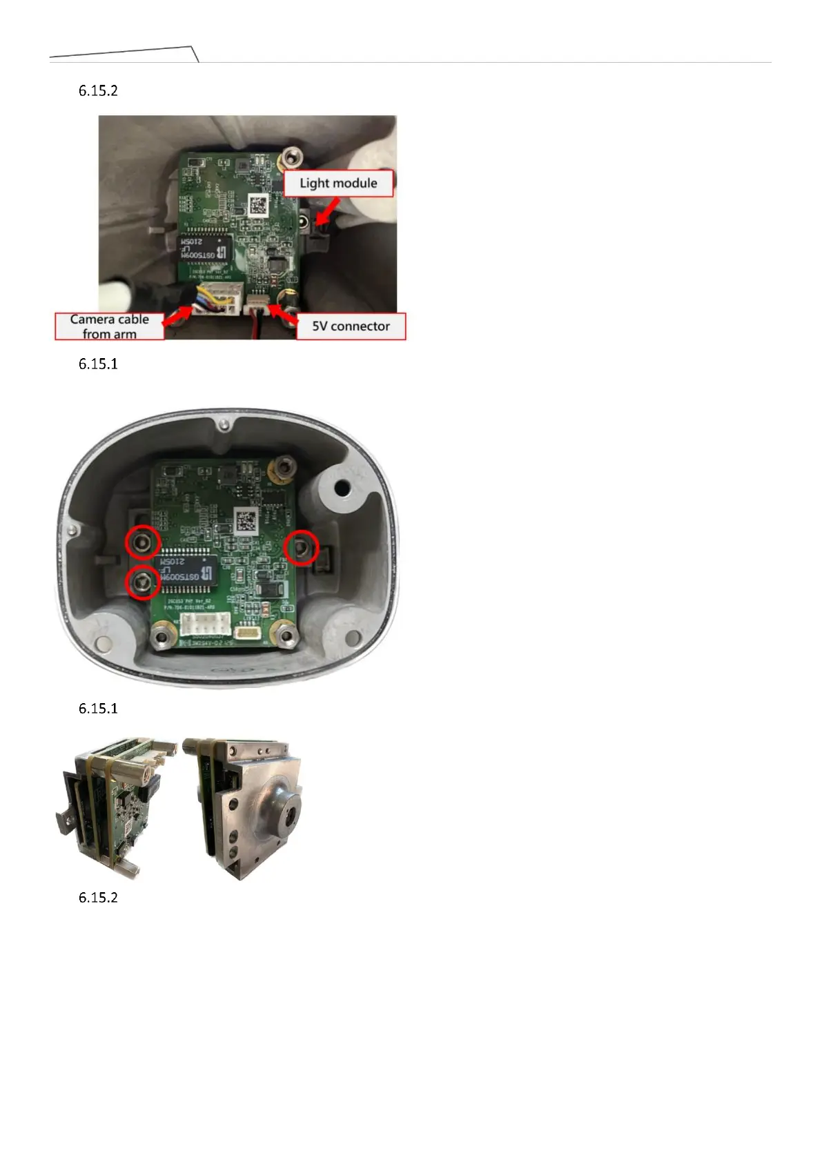 After removing the camera module, take off the three M3L6 screws securing the TRI camera. The torque