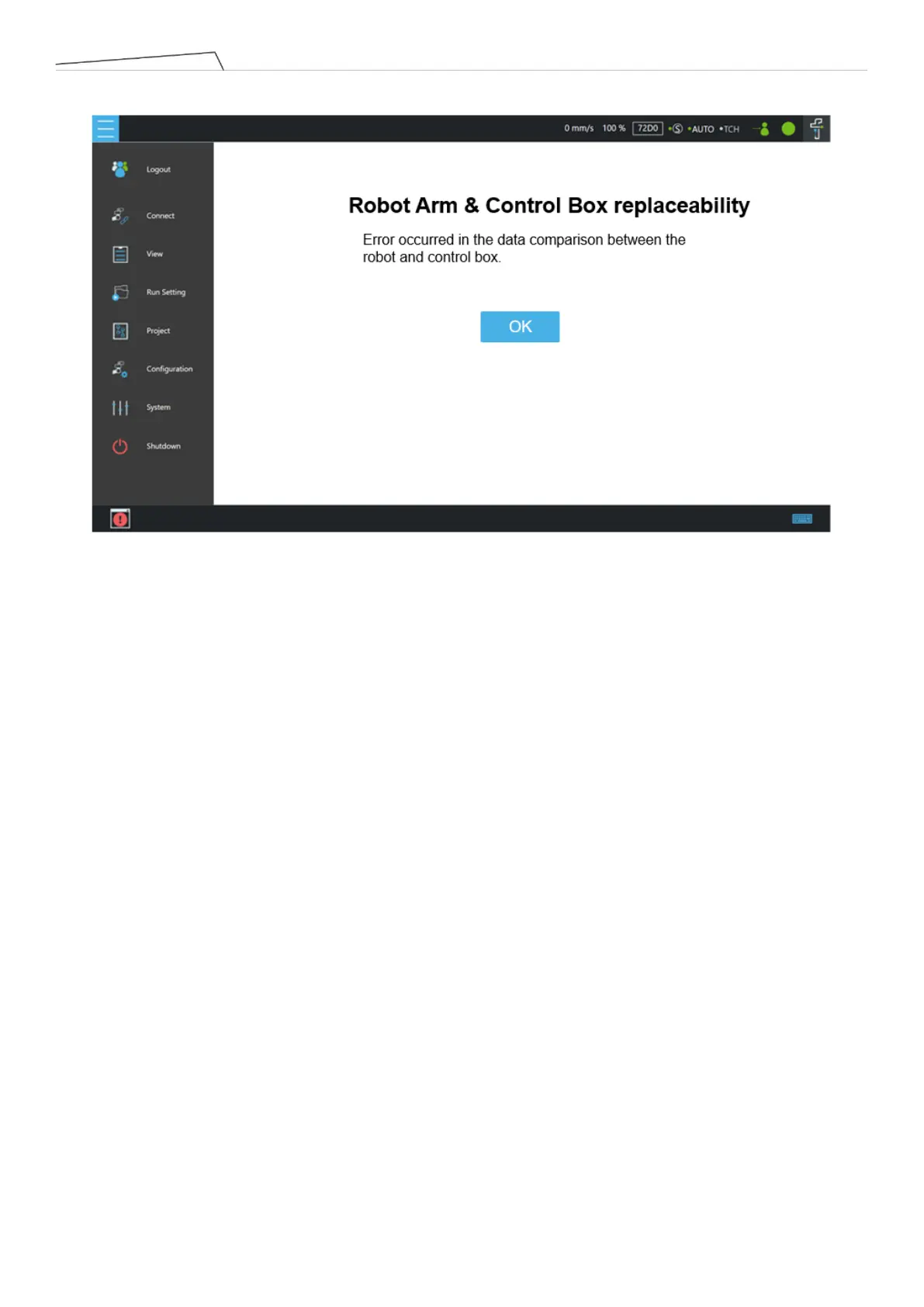 • The maintenance personnel need to recalibrate/update arm-end data/update control box version.