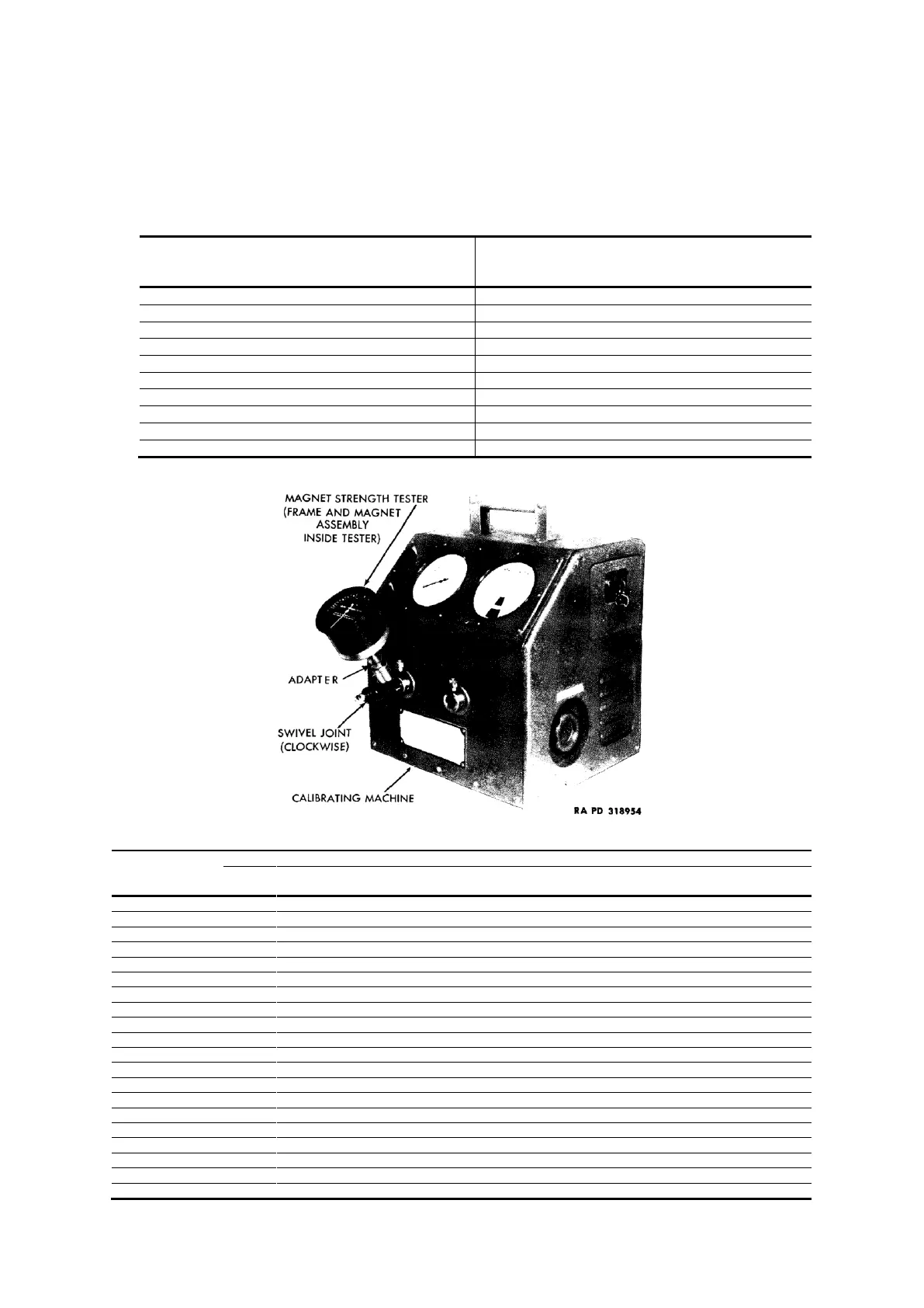 strength tester (408165) on frame and magnet assembly. Place assembly on calibrating machine (fig. 69), run