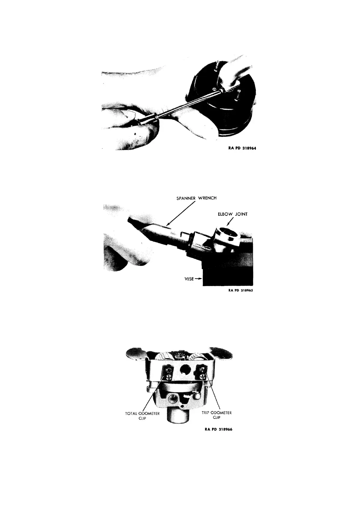 d. Remove odometer assemblies: Remove three screws (fig. 99) and lift off complete odometer and frame