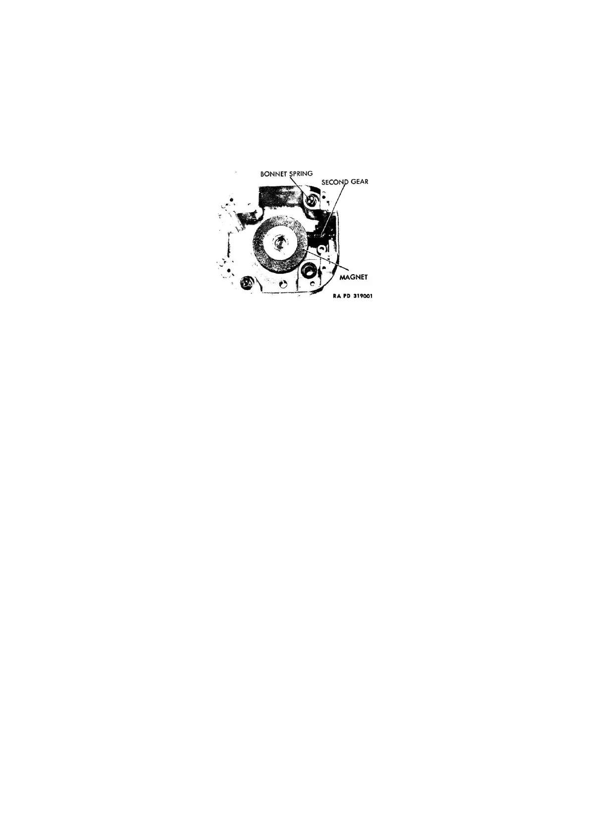 c. Replace reset shaft, third gear, odometers, and dial supports (fig. 114): Place reset shaft through hole in