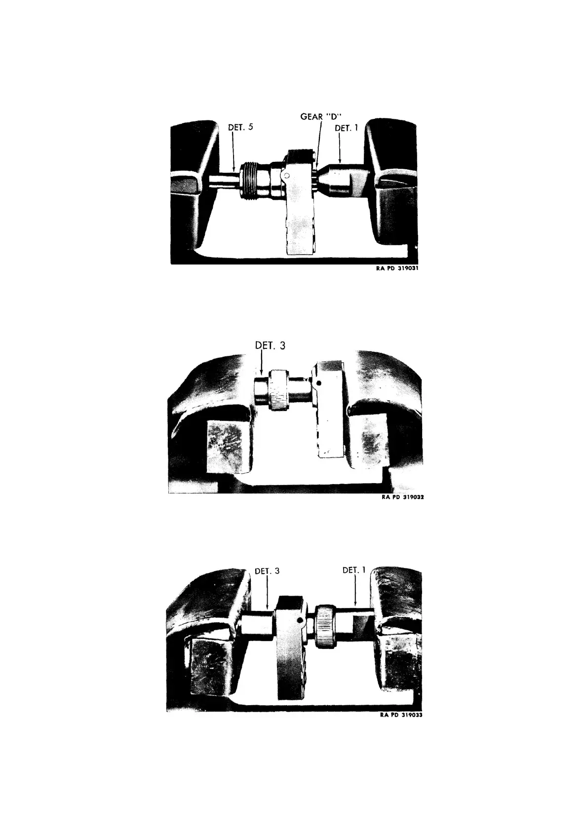 tool (T-178708 Det. 1 and 3) in vise, and press gear (A) on shaft (fig. 148). Allow about 0.005 inch end play.