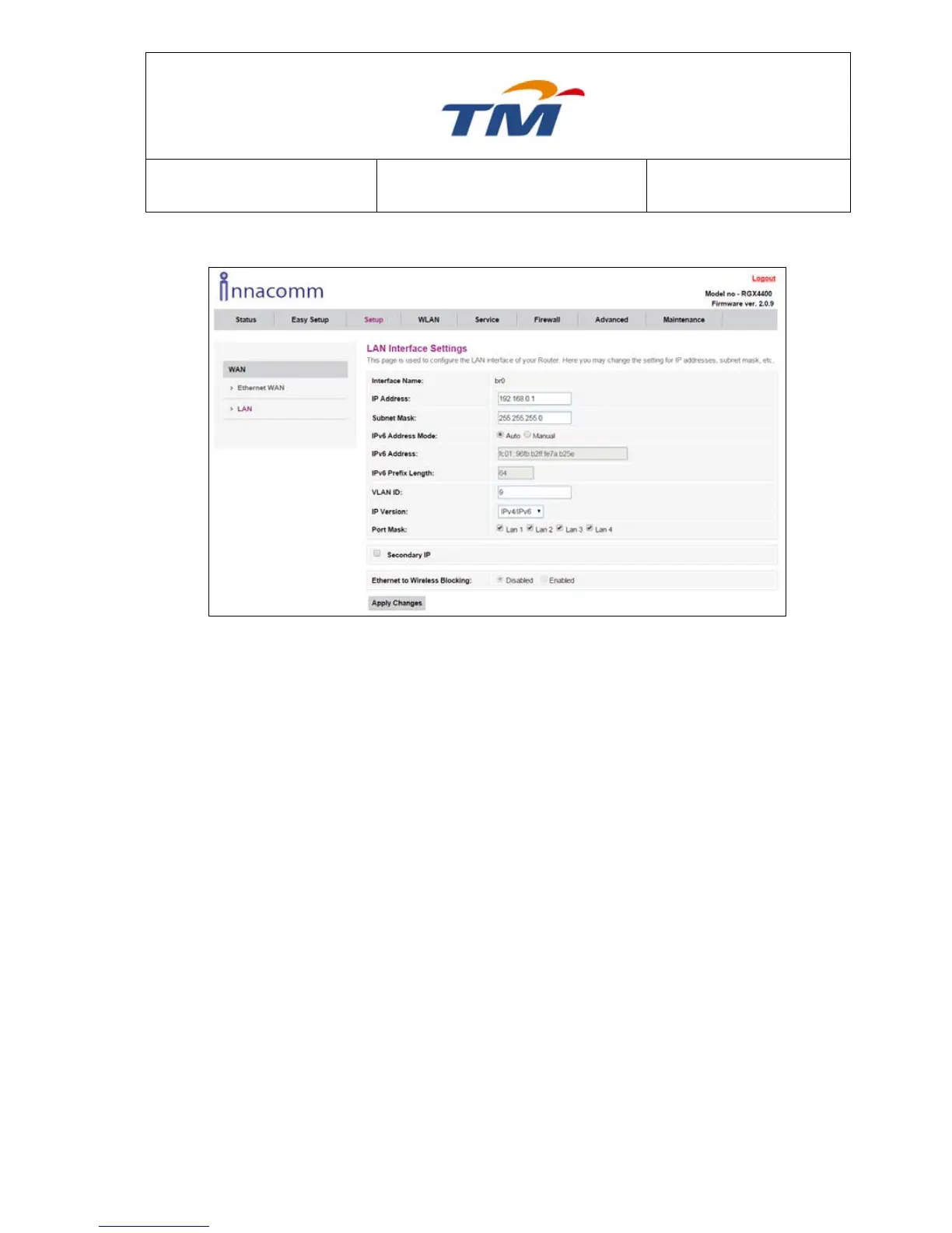 IPv6 Address IP Address for the LAN interface. Can be edit when