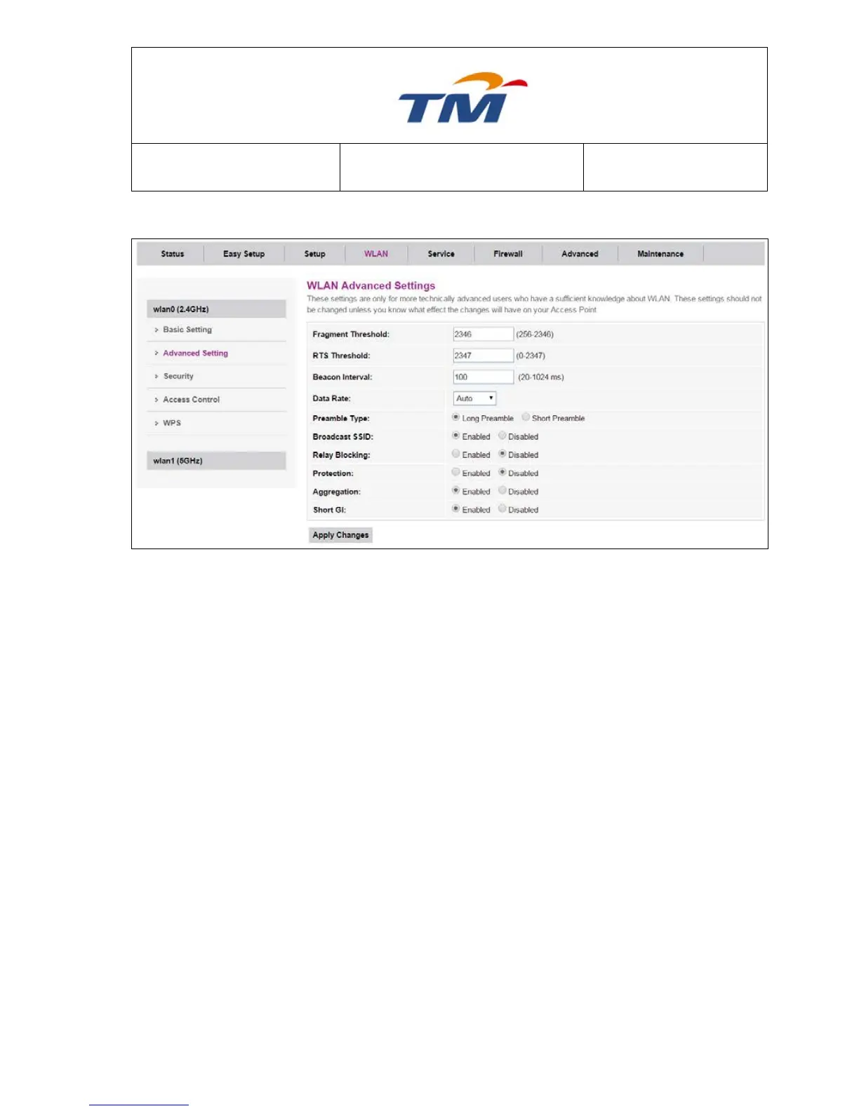 6.3.2 WLAN Advanced Setting