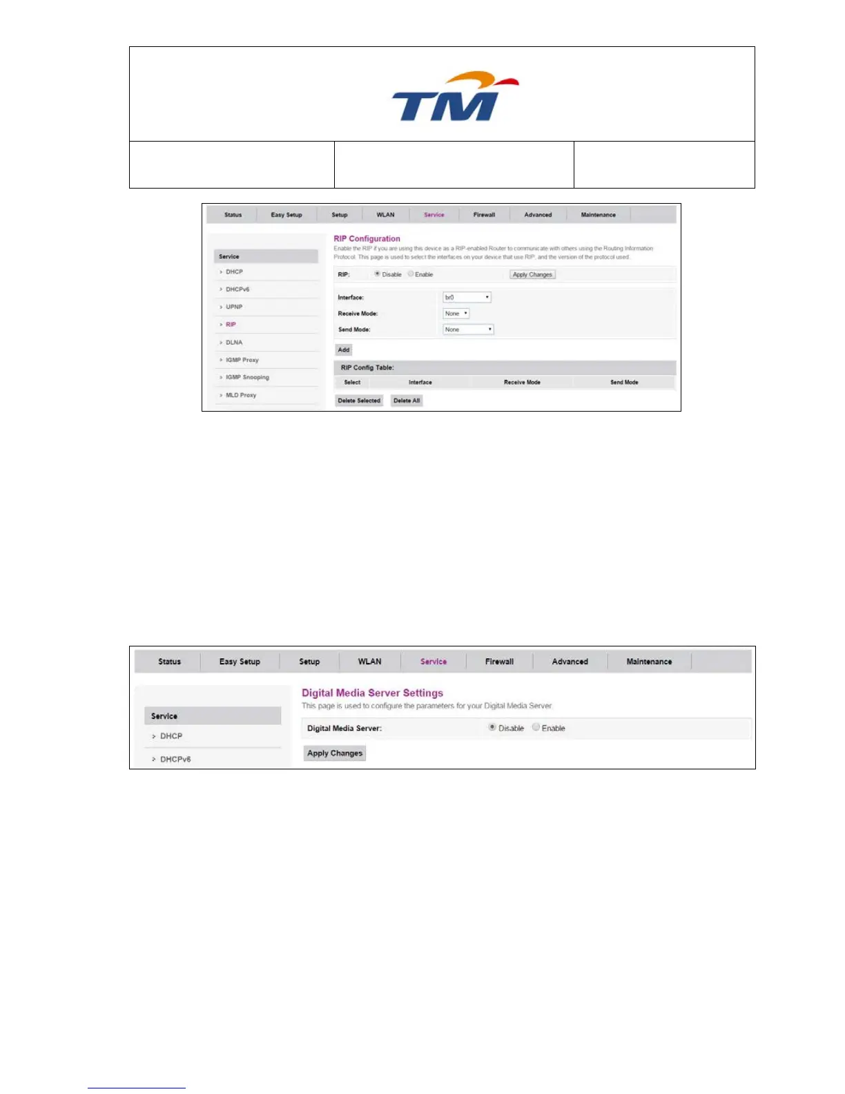This Page is used to enable DLNA service. By default this setting is disabled.