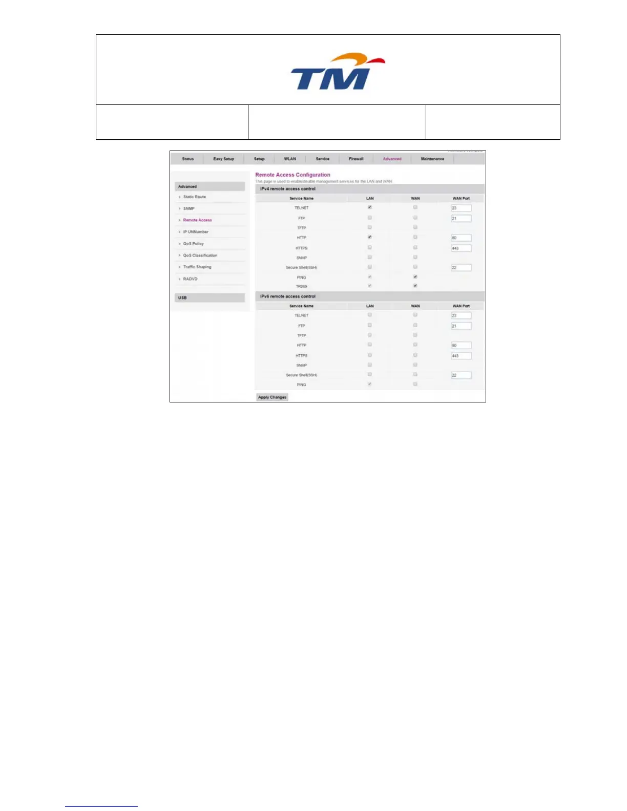 LAN Check/un-check the services on the LAN column to allow/un-allow the