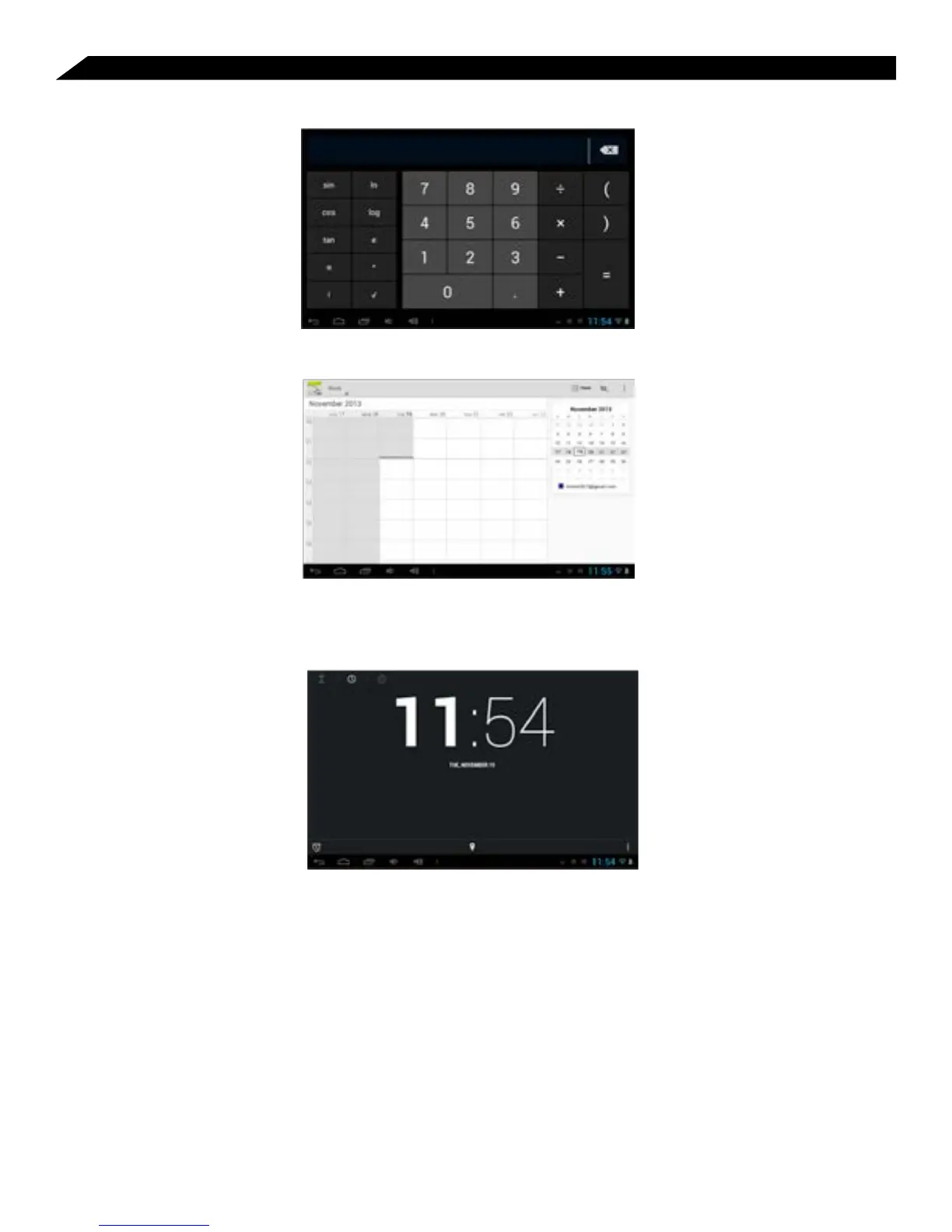 • Clock - A standard clock/alarm. You can either set the time manually or, when connected