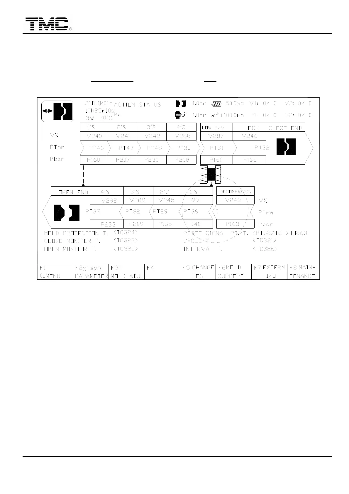 2.1 Set clamp DECOMPRESS. position to 0, 1’S pressure to 140, speed to