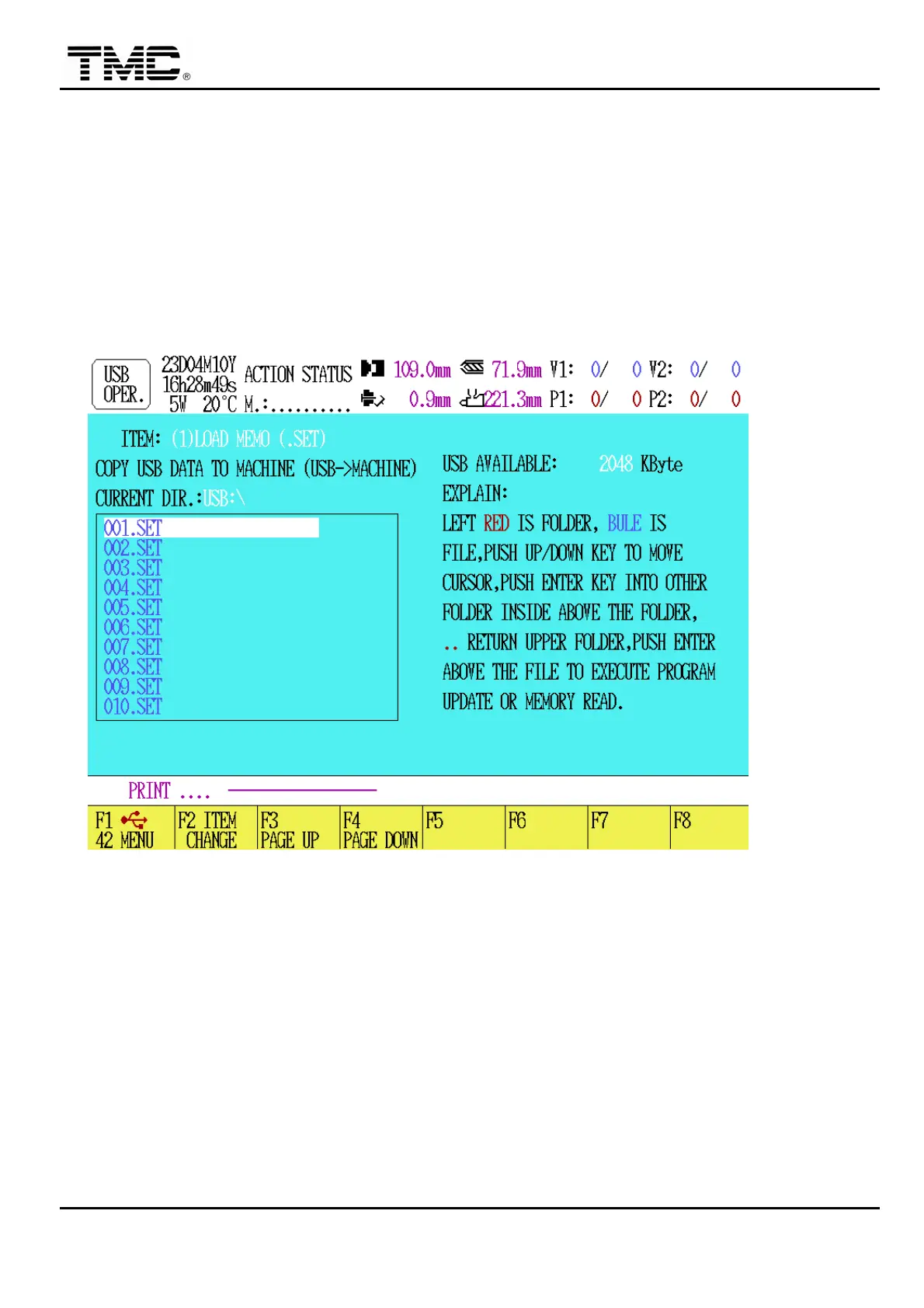 (1) LOAD MEMO (.SET): Select mold data in USB, for example, the filename