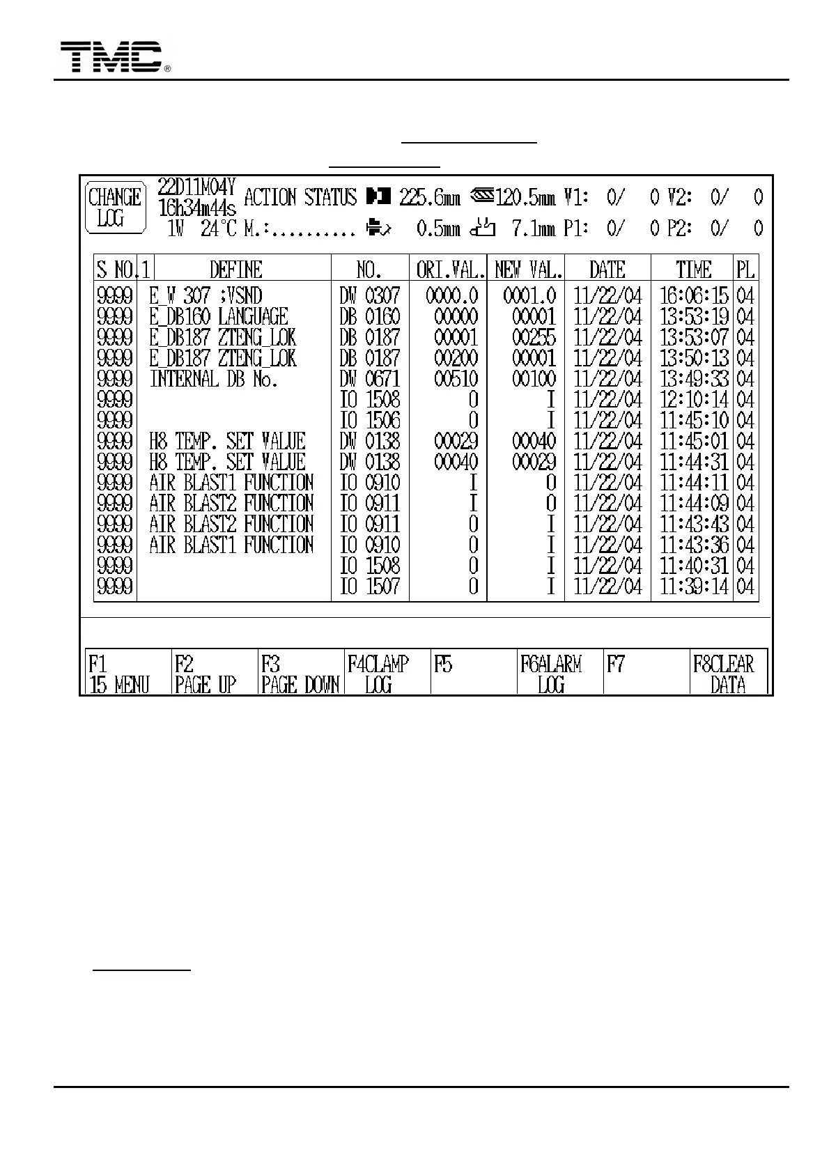 On MACHINE MONITORING screen press F5 CHANGE LOG or use direction key to move
