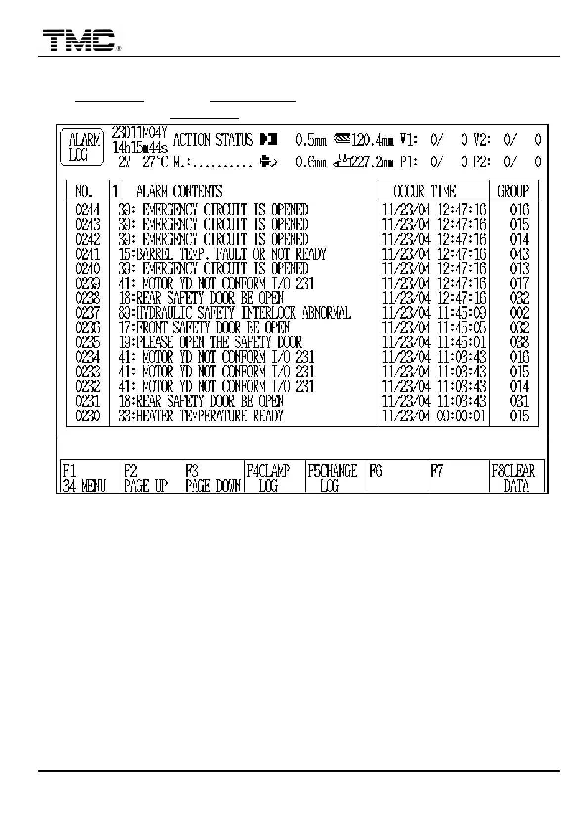 main menu screen to ALARM LOG,press ENTER to display this screen.