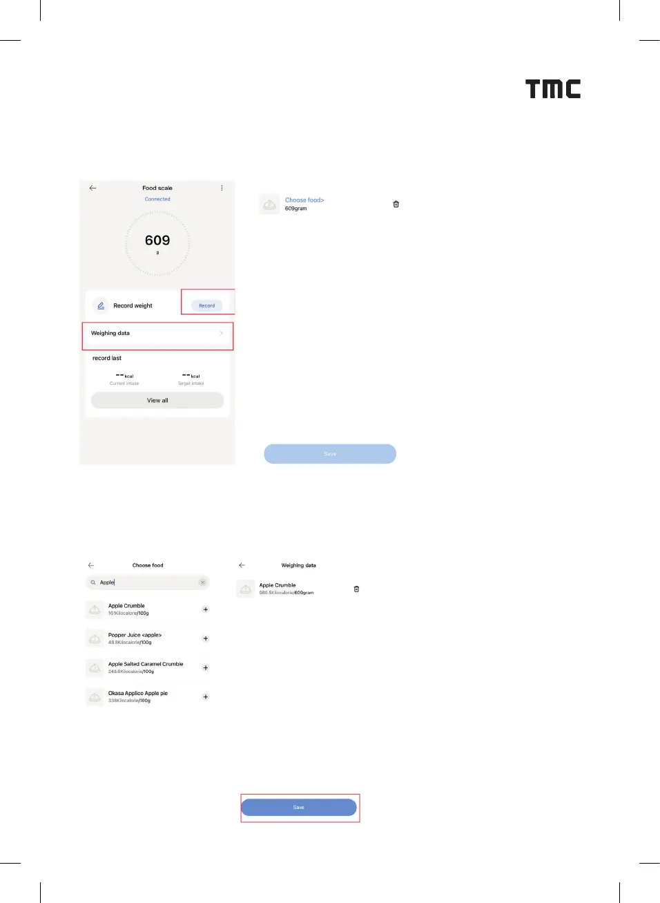de app. Vervolgens kun je voedsel op de weegschaal plaatsen om te beginnen met