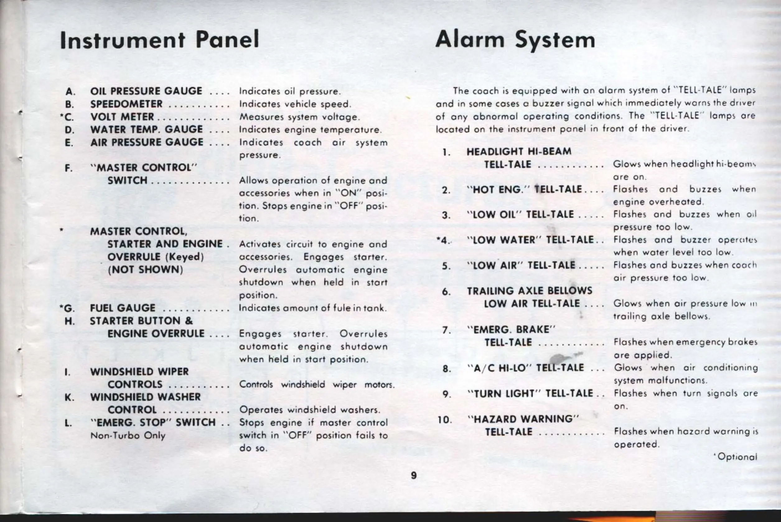 TMC MCI mc-9 - Instrument Panel; Alarm System