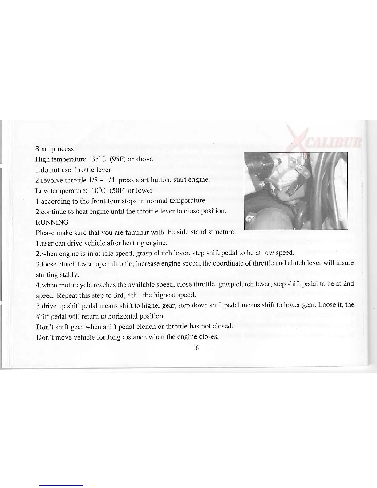 TMEC 125-1 - Cold and Hot Start Procedures; Running the Motorcycle
