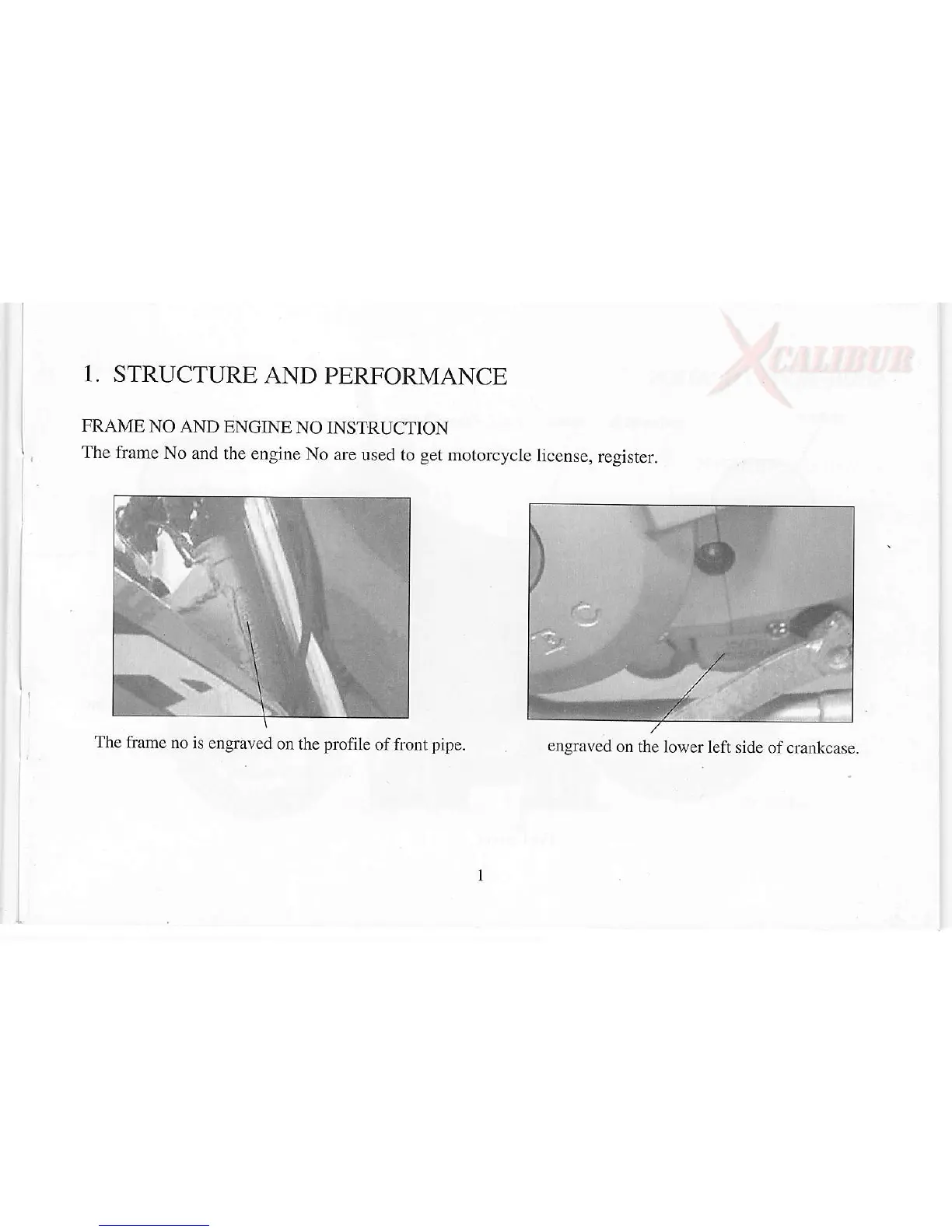 TMEC 200-1 - STRUCTURE AND PERFORMANCE; FRAME AND ENGINE NUMBER IDENTIFICATION