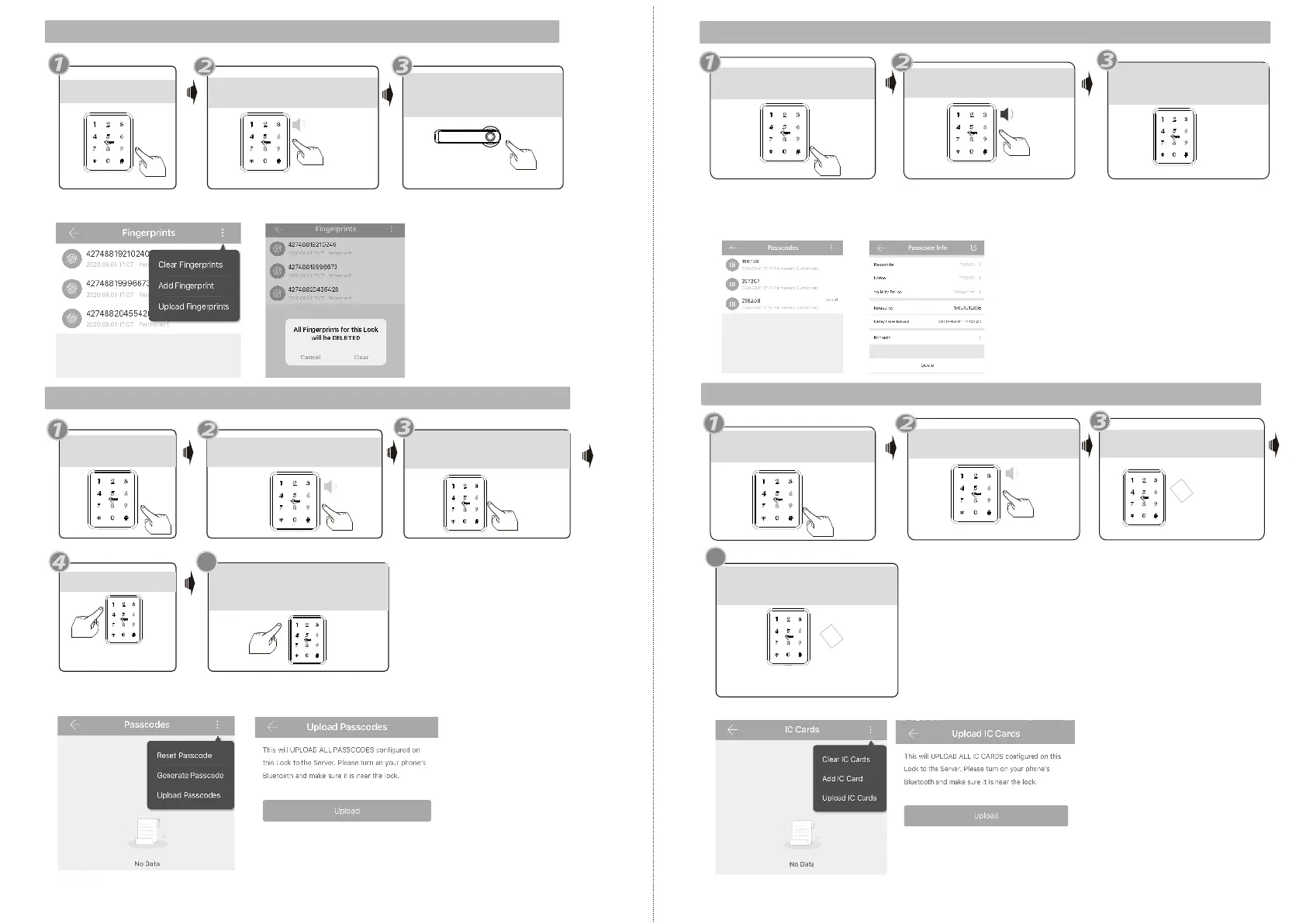 En la aplicación móvil, puede cargar las tarjetas agregadas en la cerradura y el servidor.