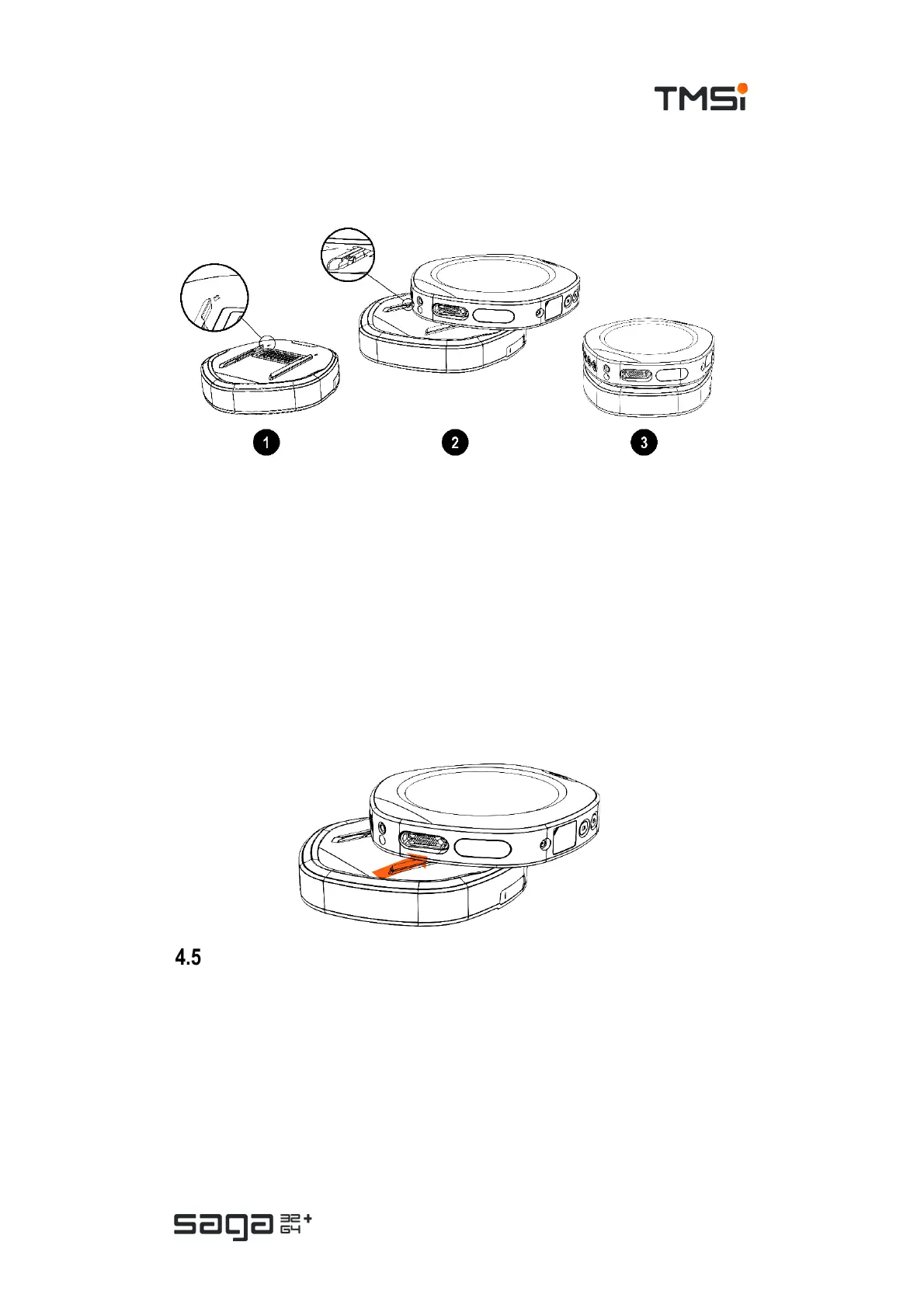 alignment symbols and gently push the plug into the receptacle of the SAGA device.