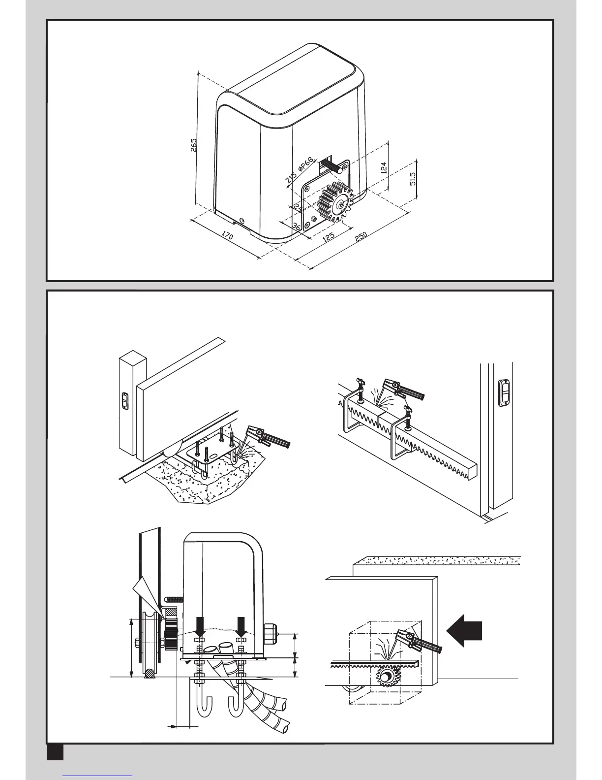 TMT Automation BOXER800E - Device Dimensions; Motor and Gear Rack Installation