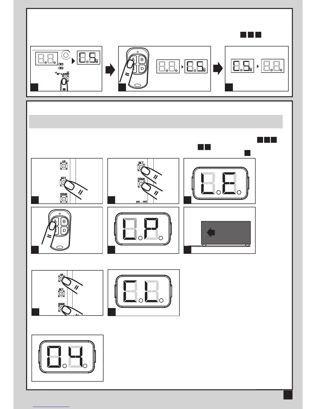 (1) Transmitter Memorizing: Press “RF Learn” button for 2 seconds, and the LED display shows “CS”; then press the transmitter