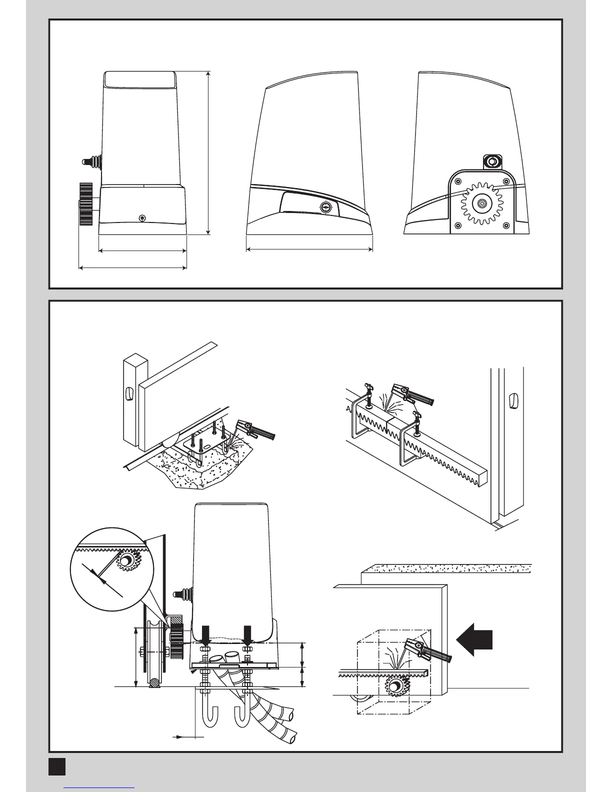 TMT HUSKY500 - Dimension of Device; Installation of Motor Gear and Gear Rack
