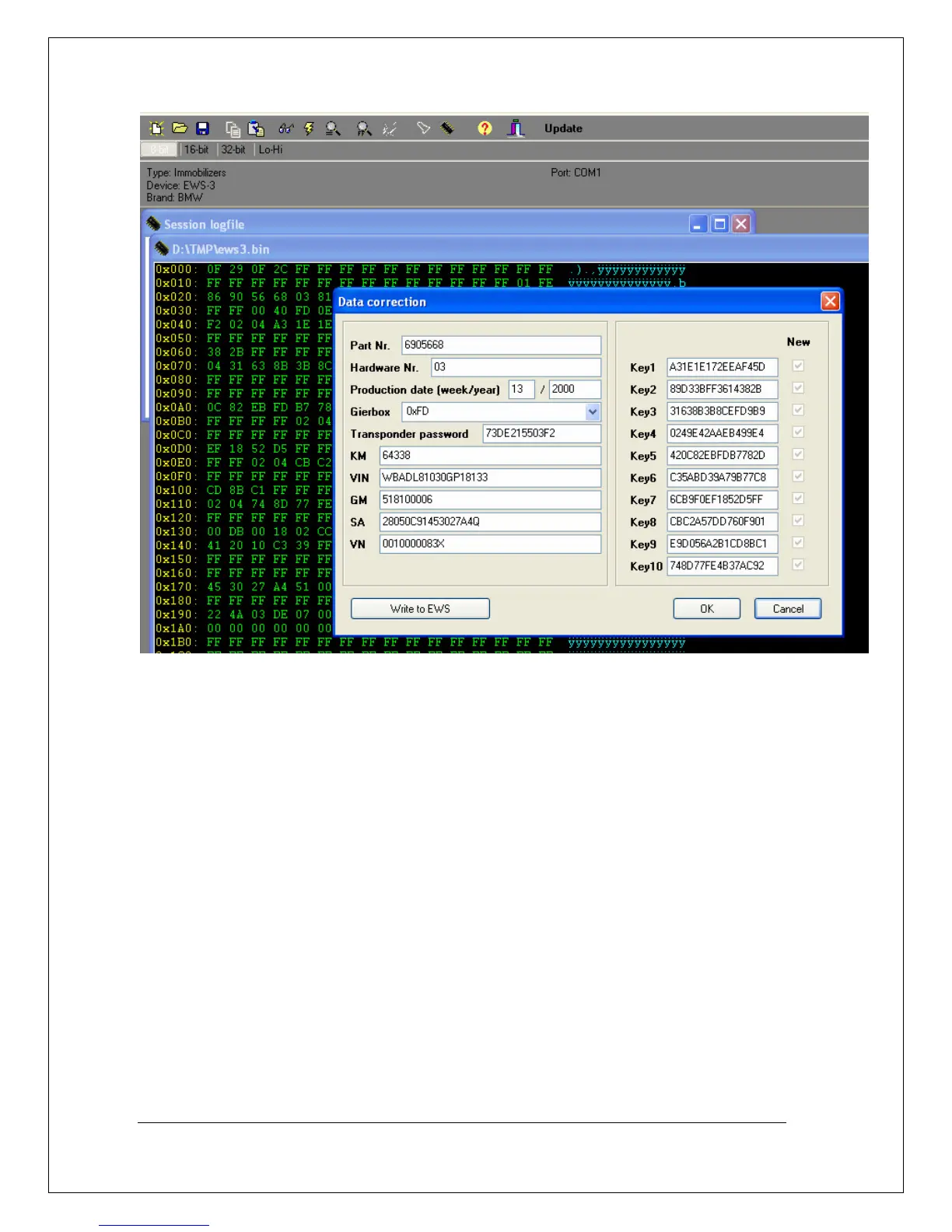 Figure 9. BMW EWS3 tools dialog