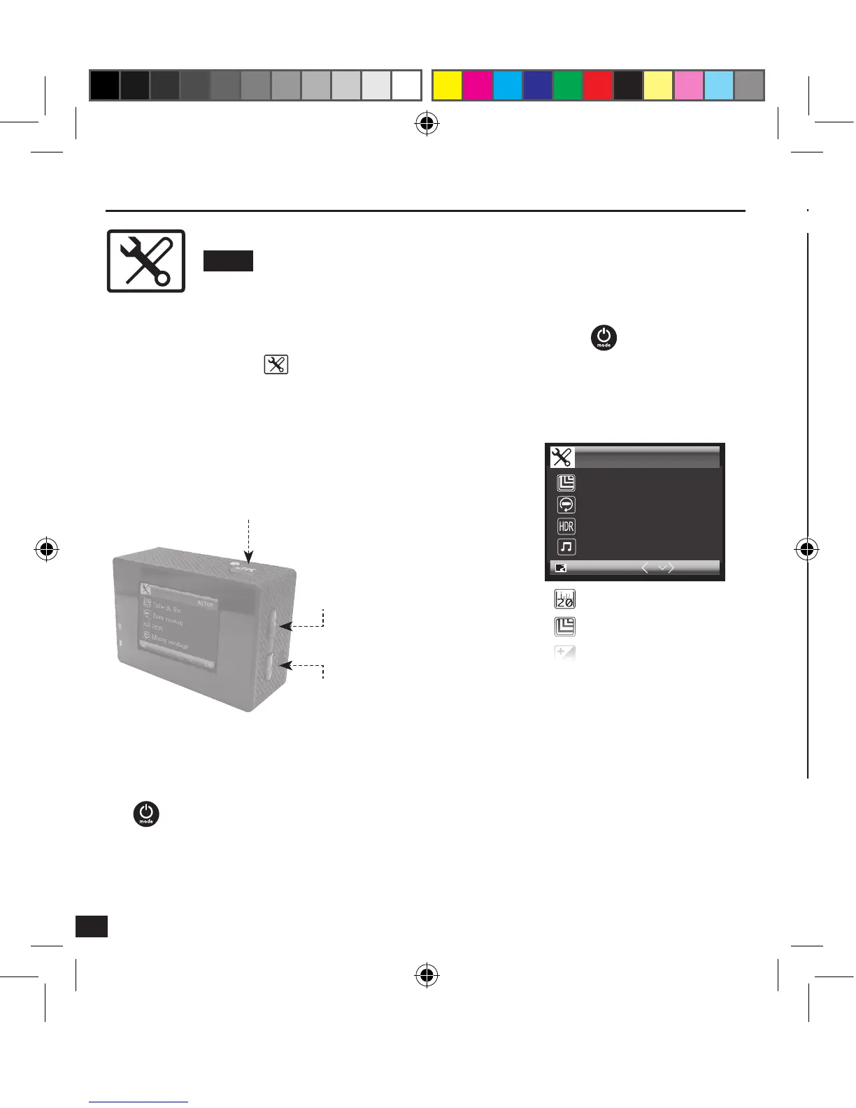 To access the list of the different possible configuration options, press multiple times