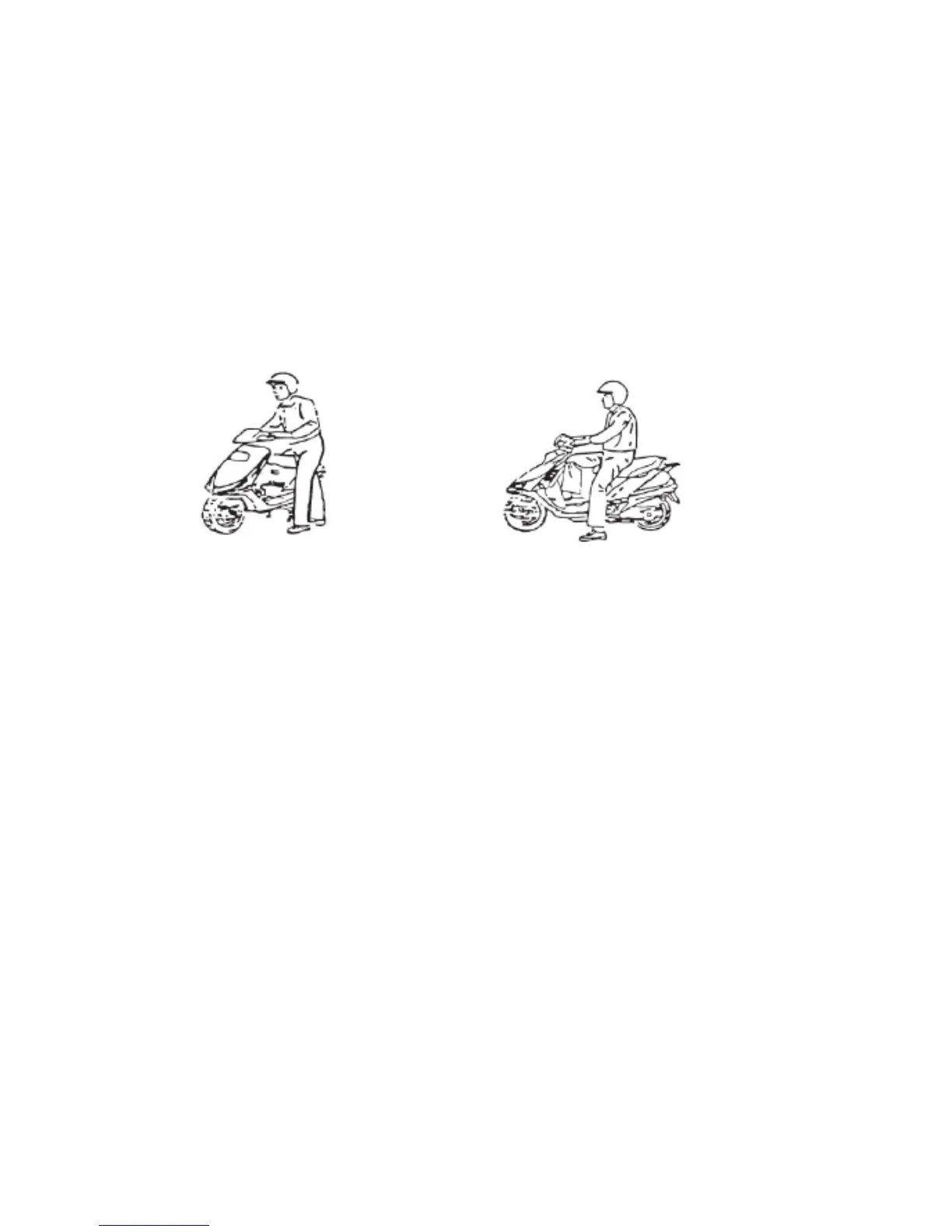 • Place your hands on the handlebars and step onto the scooter from the left side.