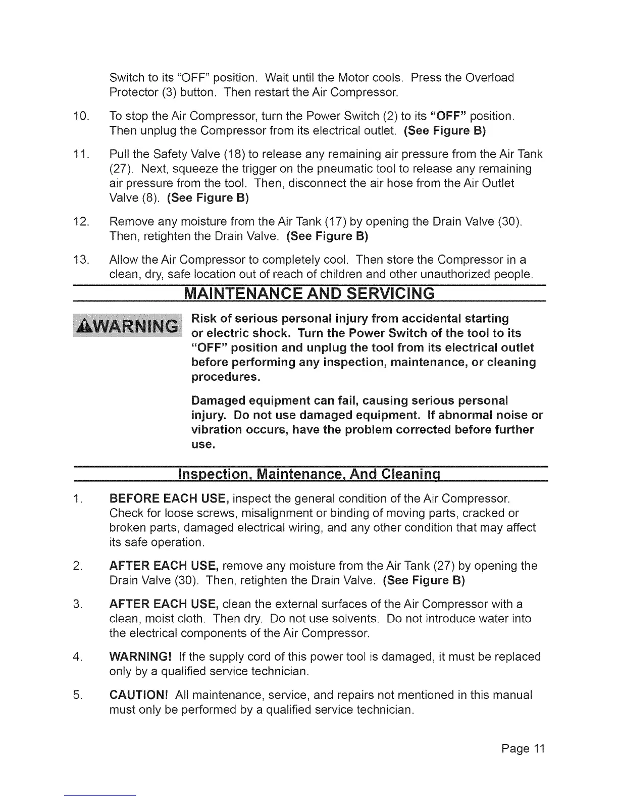 Then unplug the Compressor from its electrical outlet. (See Figure B)