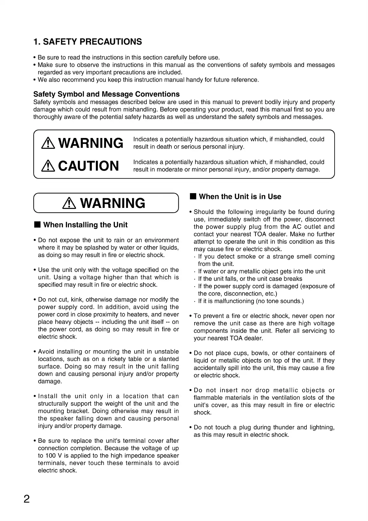 Toa A-1503 - Safety Precautions; Safety Symbols and Message Conventions; Installation Safety Guidelines; Operational Safety Guidelines