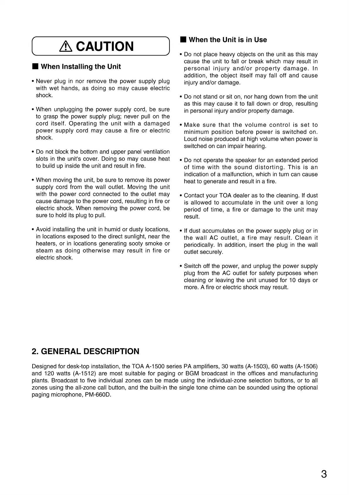 Toa A-1512 - Operational Safety Precautions; GENERAL DESCRIPTION