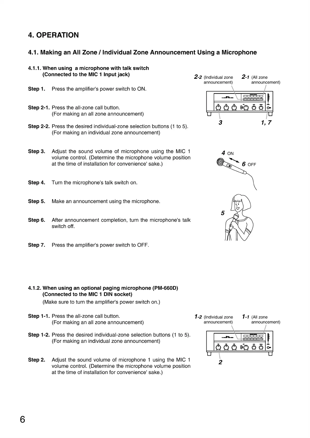 Toa A-1512 - OPERATION; Making Announcements with Microphones