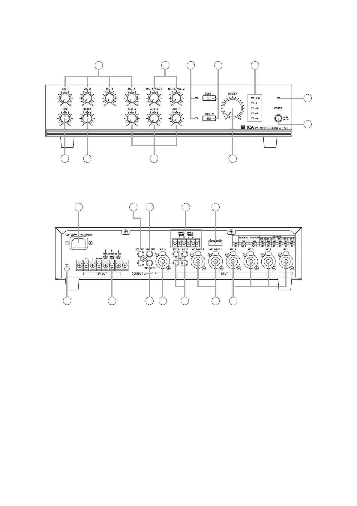 4. Microphone/AUX volume controls