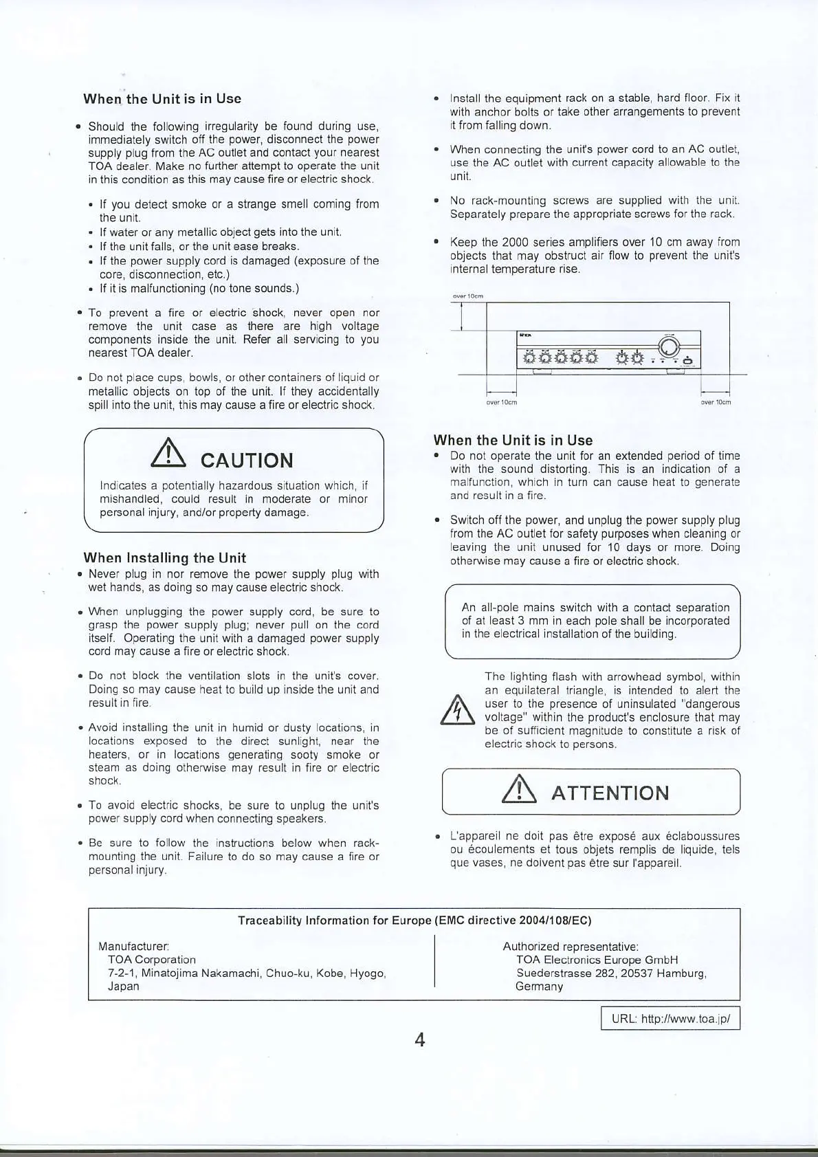 Toa A-2030 CE - When the Unit is in Use