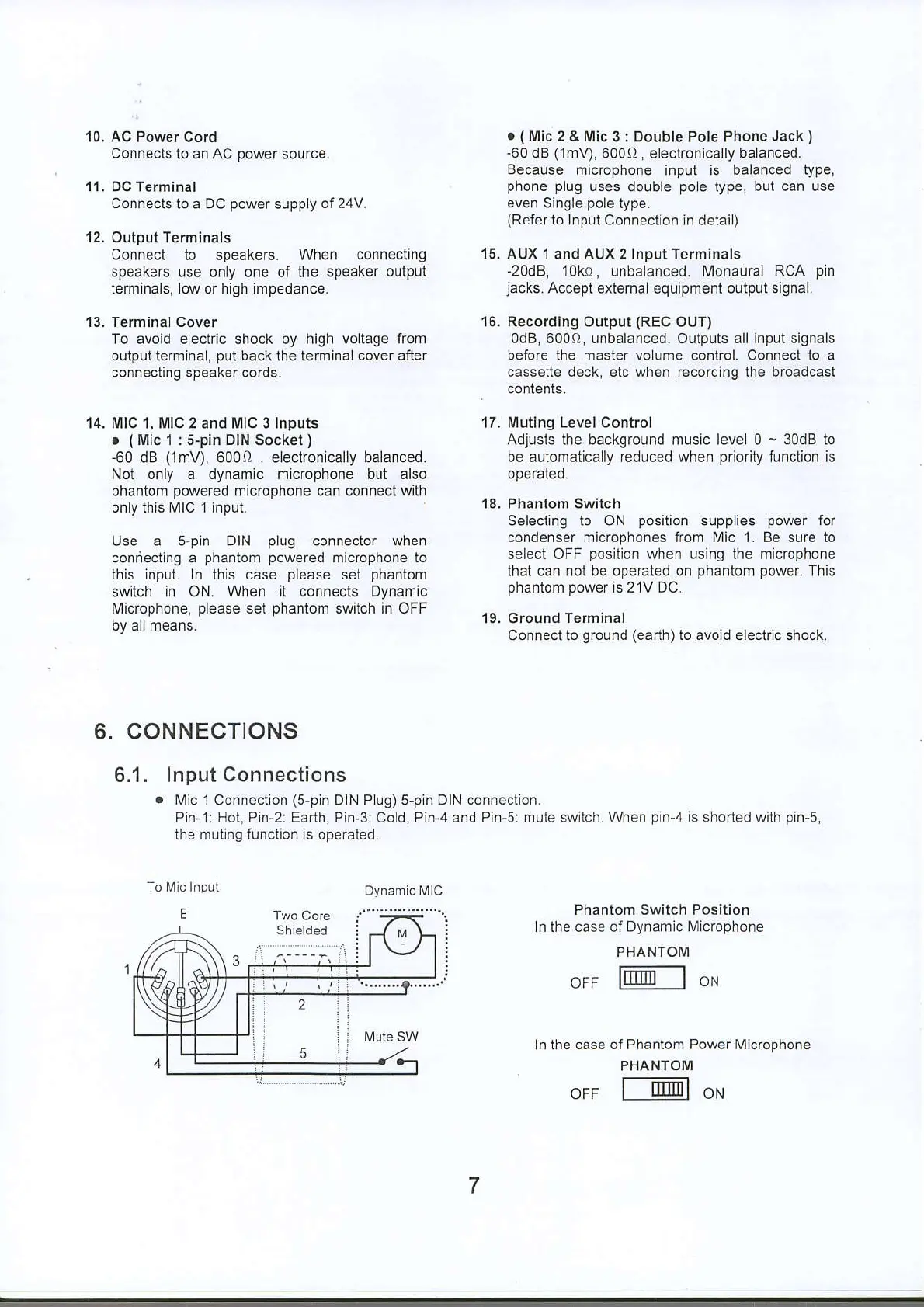Toa A-2030 CE - CONNECTIONS; Input Connections Guide