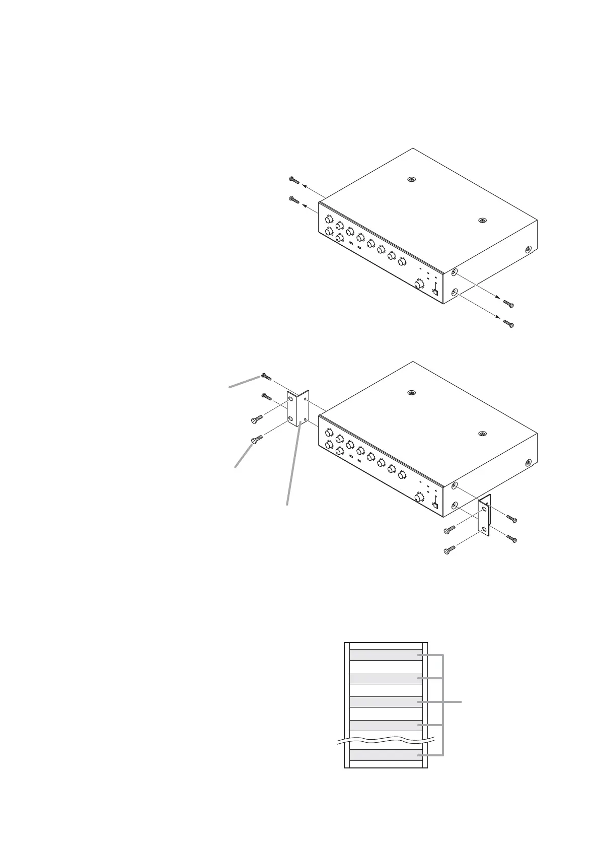 • Rack mounting screws are not supplied with the unit. Use the screws that are appropriate for the rack.