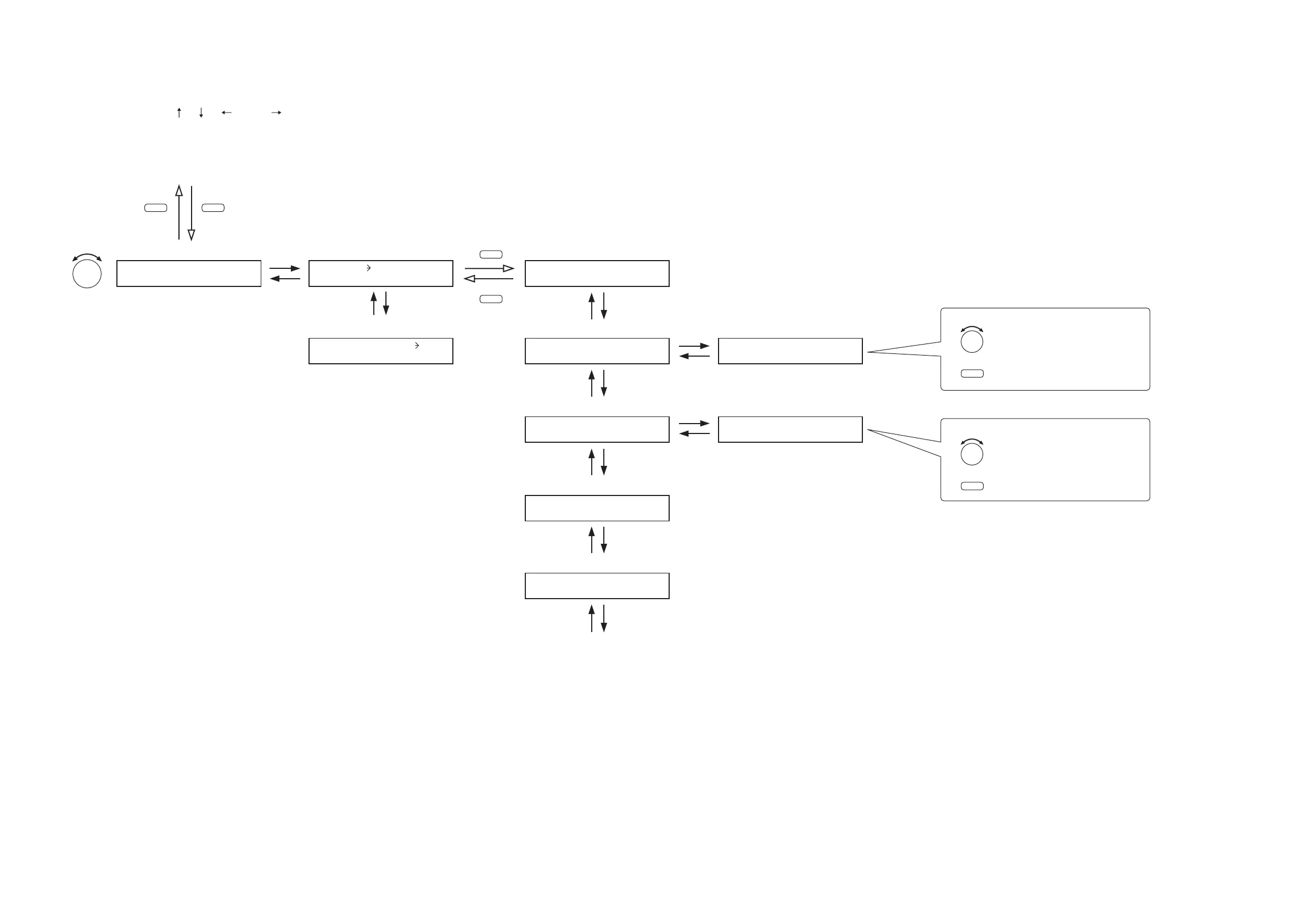 The indications of the [ ], [ ], [ ], and [ ] arrows represent that the screen is switched with the Screen
