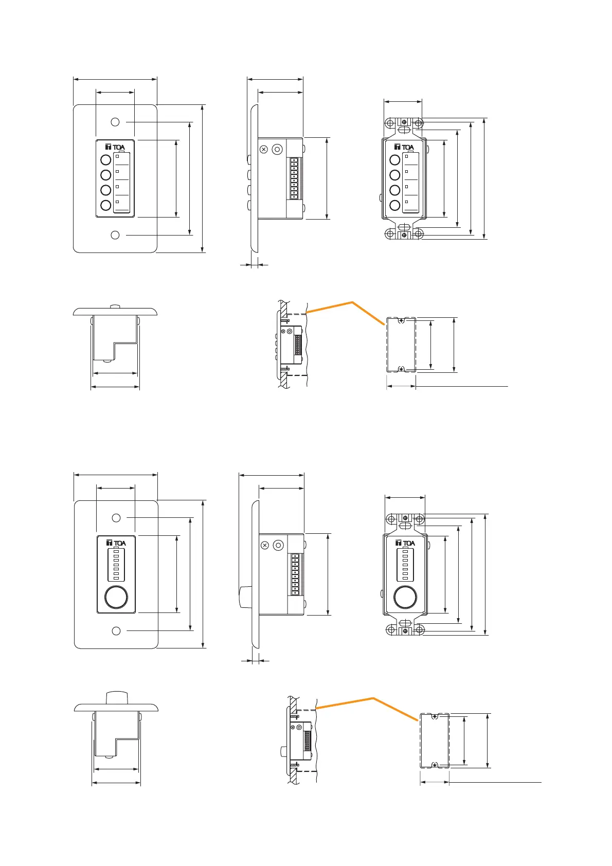 [Bottom] [Figure when mounted] [Dimensions of mounting opening]