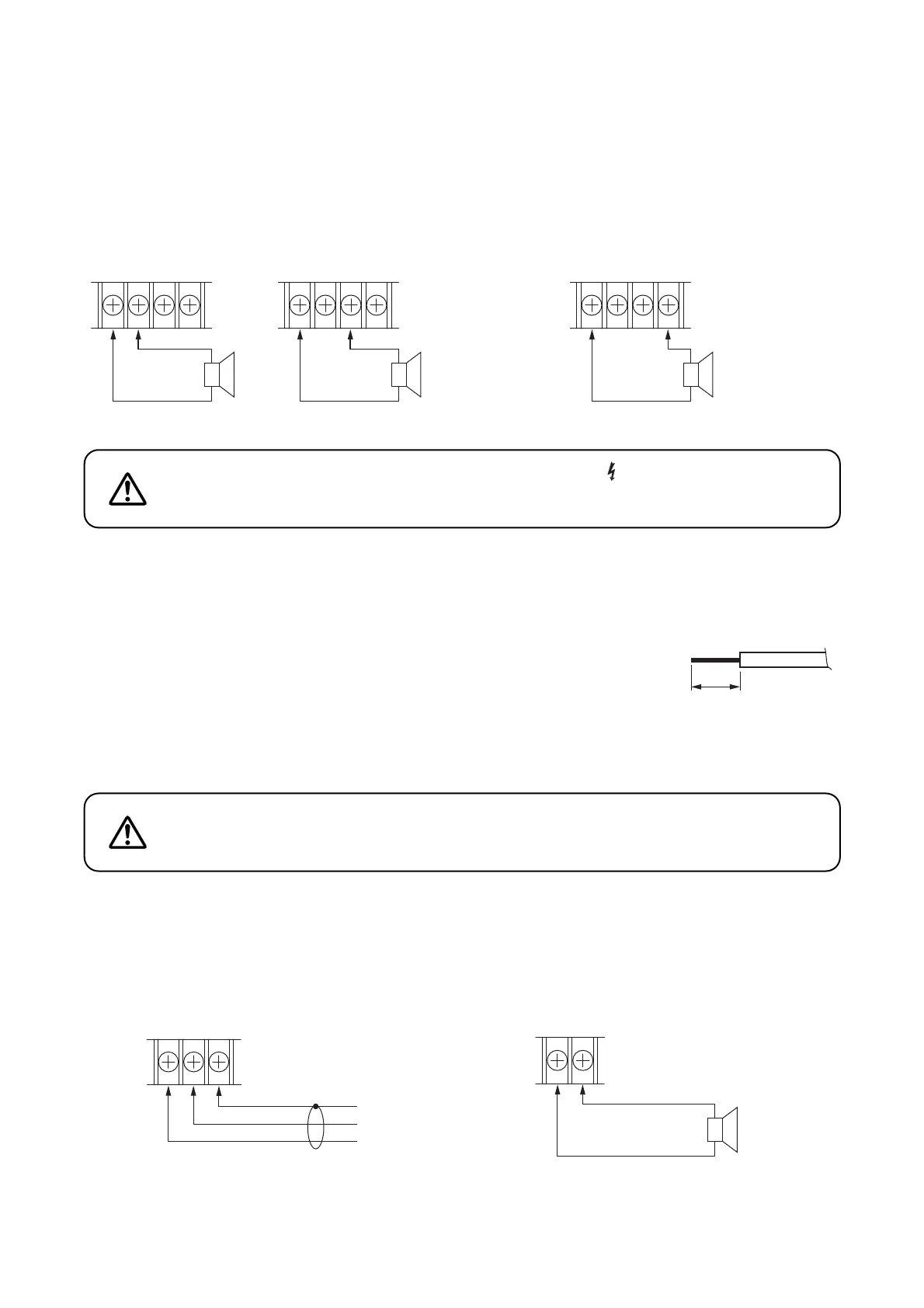 Each amplifier has 3 speaker outputs: 4 Ω, 25 V and 70 V. Use only one of these outputs for connection.