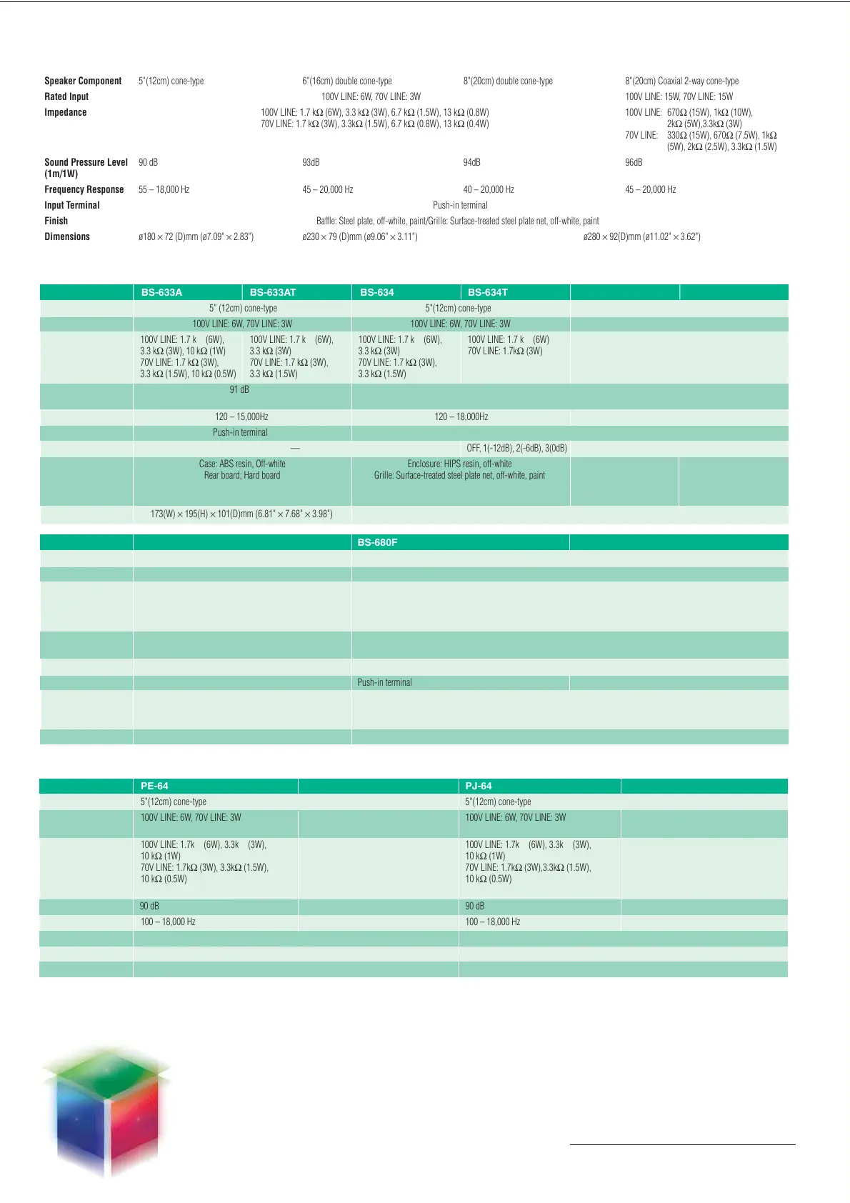 Speaker Component 5"(12cm) cone-type 5"(12cm) cone-type + balanced dome tweeter 5"(12cm) cone-type 5"(12cm) cone-type + balanced dome tweeter